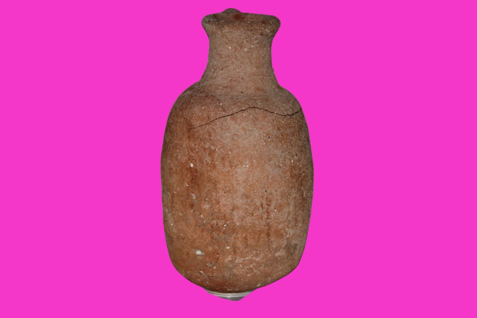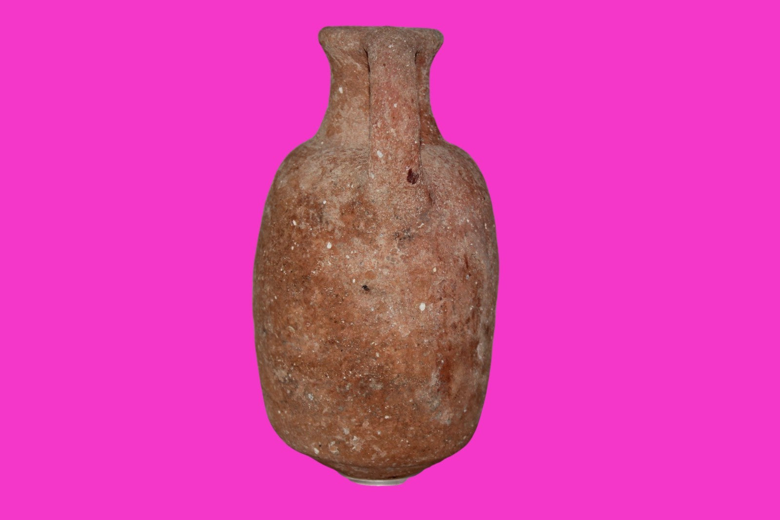 Dimensions: 4 ¼ inches tall, 2 ¾ inches wide, weighs 173 gramsProvenance: Excavated in Jerusalem in the 1980’s. Acquired by the Hamadian Antiquities Gallery in The Old City of Jerusalem. Export to the United States approved by the Israeli Antiquities Authority in 2025. Acquired by The Artifact City Collection in September 2025.Description: Redware terra cotta jug. Mineral deposits indicative of approximately 3000 years of underground burial. Small rim chips and surface loss. No repairs or restorations found. Overall Outstanding condition. King David is often looked upon as the most successful military conqueror in the history of the Israelite nation. By the end of his reign in 971 BC, the boundaries of Israel and the neighboring vassal kingdoms who paid tribute to David stretched across the Fertile Crescent from the Wadi of Egypt to the River Euphrates.