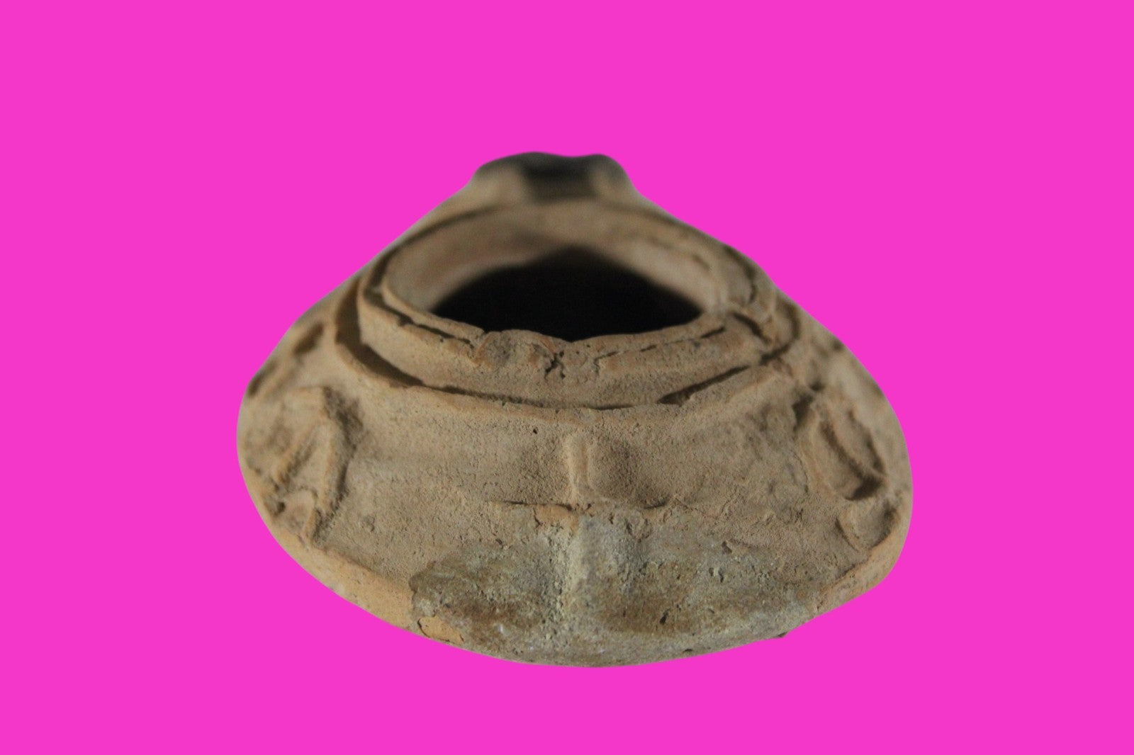 Dimensions: 1 ¼ inches tall, 4 inches long, 2 ½ inches wide, weighs 90 grams Provenance: Ex. Private Jerusalem collection, Acquired in the aftermath of the 1967 Six Day War. Acquired by John McIntosh, MSE, MBA, Ancient Artifacts & Treasures, Winter Park, Florida in 2022. Acquired by The Artifact City collection in 2025. Description: Terra Cotta oil lamp made from a two part mold. Oil from animal fat or olives were used with a wick to provide lighting. Oil lamps were mass produced in large quantities throughout the Holy Land and surrounding areas. Their use was significant in both Jewish and early Christian religious ceremonies. They were the equivalent of today’s “light bulbs”.