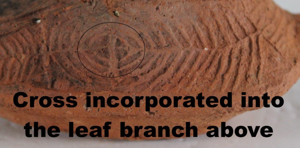 Ancient Holy Land Oil Lamp Artifact 2 Hidden Christian Crosses 300-600 AD COA 77