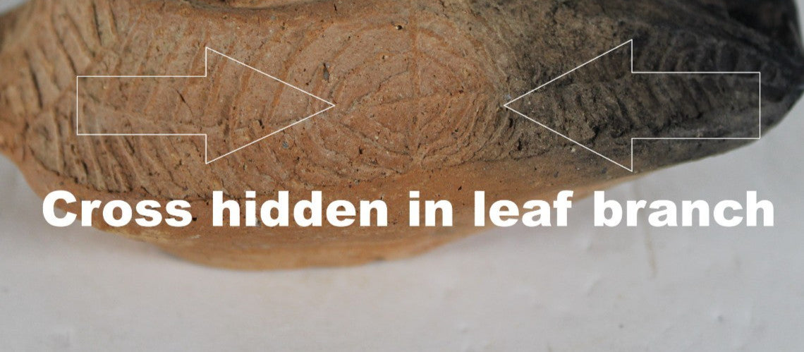 Ancient Holy Land Oil Lamp Artifact 2 Hidden Christian Crosses 300-600AD COA 108