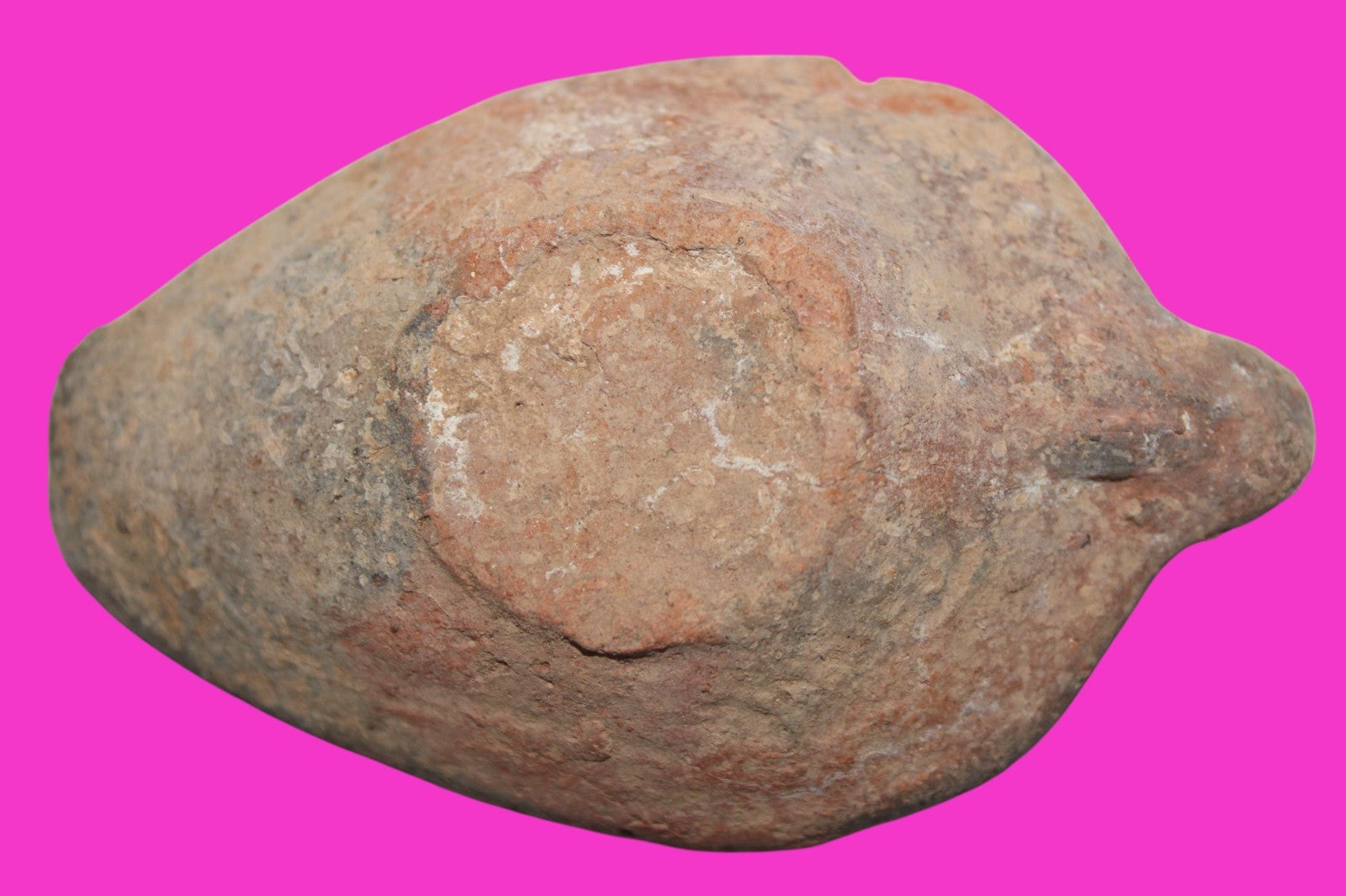 Dimensions: 4 inches long, 2 ½ inches wide, 1 ½ inches tall, weighs 76 grams. Provenance: Excavated in Judea in the late 1990’s. Ex Private Tel Aviv Collection. Acquired by the Hamadian Antiquities Gallery in The Old City of Jerusalem. Export to the United States approved by the Israeli Antiquities Authority in 2025. Acquired by The Artifact City Collection in September 2025. Description: Terracotta oil lamp made from a two-part mold. Oil from animal fat or olives were used with a wick to provide lighting. Oil lamps were mass produced in large quantities throughout the Holy Land and surrounding areas. Their use was significant in both Jewish and early Christian religious ceremonies. They were the equivalent of today’s “light bulbs”.