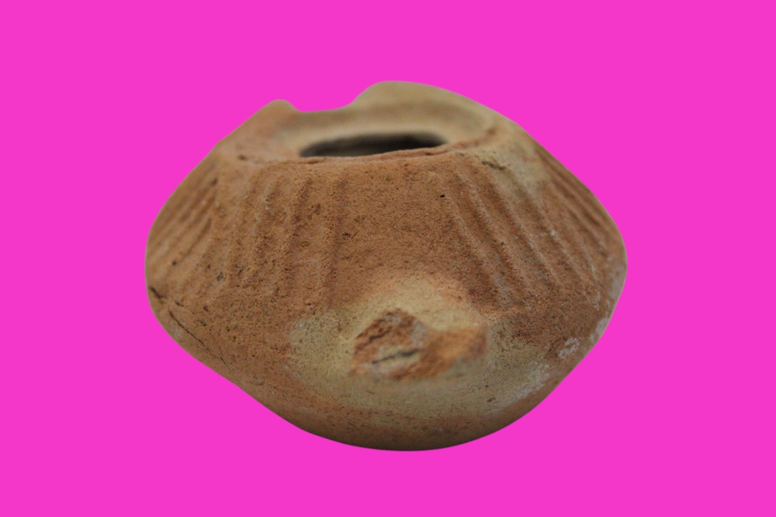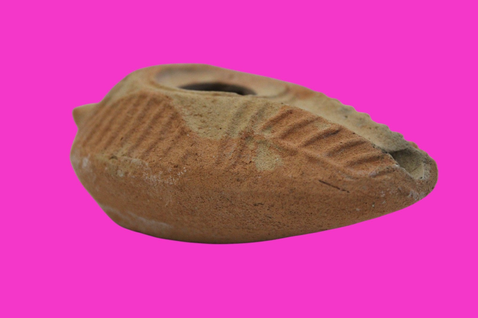 Dimensions: 4 inches long, 2 ½ inches wide, 1 ¼ inches tall, weighs 81 grams. Provenance: Excavated in Judea in the late 1990’s. Ex Private Tel Aviv Collection. Acquired by the Hamadian Antiquities Gallery in The Old City of Jerusalem. Export to the United States approved by the Israeli Antiquities Authority in 2025. Acquired by The Artifact City Collection in September 2025. Description: Terracotta oil lamp made from a two-part mold. Oil from animal fat or olives were used with a wick to provide lighting. Oil lamps were mass produced in large quantities throughout the Holy Land and surrounding areas. Their use was significant in both Jewish and early Christian religious ceremonies. They were the equivalent of today’s “light bulbs”.