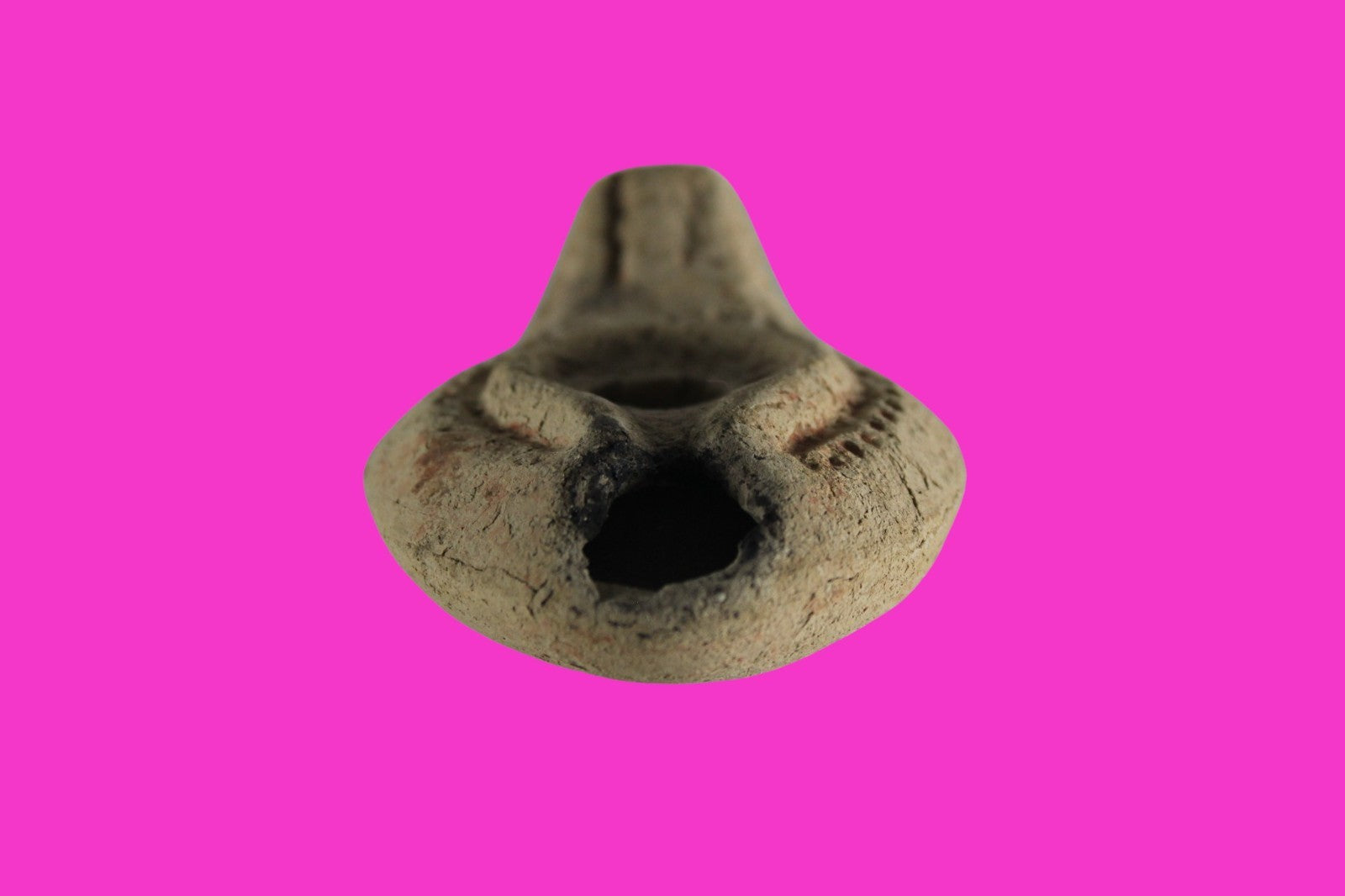 Dimensions: 3 ¾ inches long, 2 ¼ inches wide, 1 inch tall, weighs 59 grams. Provenance: Ex. Private Washington, D.C. Ex. Palmyra Heritage Fine Arts Gallery, Downtown Manhattan, Ney York City, 2025. Acquired by The Artifact City Collection in September 2025. Description: Terracotta oil lamp made from a two-part mold. Oil from animal fat or olives were used with a wick to provide lighting. Oil lamps were mass produced in large quantities throughout the Holy Land and surrounding areas. Their use was significant in both Jewish and early Christian religious ceremonies. They were the equivalent of today’s “light bulbs”.