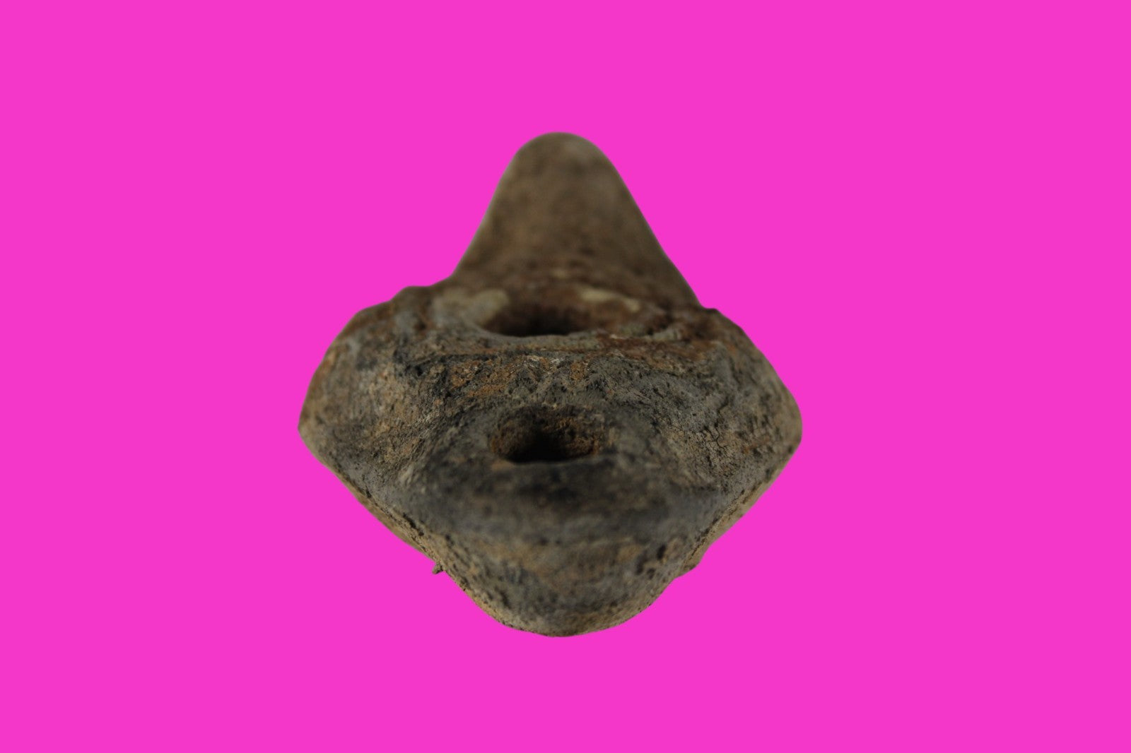 Dimensions: 3 ¾ inches long, 2 ¼ inches wide, 1 ¼ inches tall, weighs 81 grams. Provenance: Ex. Private Tel Aviv collection. Collected in the 1990’s. Acquired by John McIntosh, MSE, MBA, Ancient Artifacts & Treasures, Winter Park, Florida in 2022. Acquired by The Artifact City collection in 2025. Description: Redware oil lamp made from a two-part mold. Oil from animal fat or olives were used with a wick to provide lighting. Oil lamps were mass produced in large quantities throughout the Holy Land and surrounding areas. Their use was significant in both Jewish and early Christian religious ceremonies. They were the equivalent of today’s “light bulbs”.