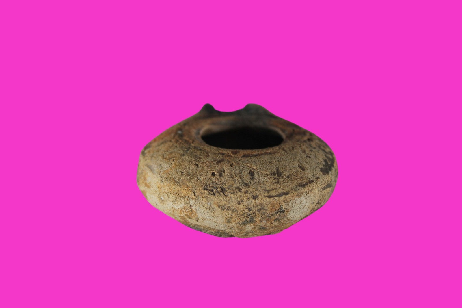 Dimensions: 2 ½ inches long, 2 inches wide 1 inch tall, weighs 42 grams Provenance: Excavated in the aftermath of the 1967 Six Day War in Judea. Acquired by the Hamadian Antiquities Gallery in The Old City of Jerusalem. Export to the United States approved by the Israeli Antiquities Authority in 2025. Acquired by The Artifact City Collection in September 2025. Description: Terracotta oil lamp made from a two-part mold. Oil from animal fat or olives were used with a wick to provide lighting. Oil lamps were mass produced in large quantities throughout the Holy Land and surrounding areas. Their use was significant in both Jewish and early Christian religious ceremonies. They were the equivalent of today’s “light bulbs”.