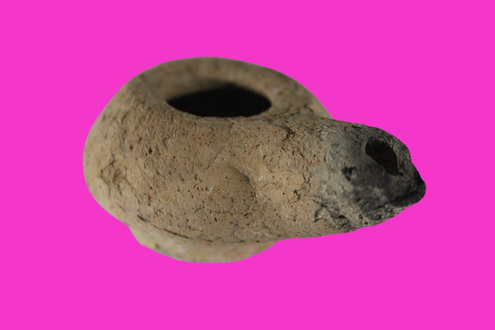 Dimensions: 1 ¼ inches tall, 2 ¾ inches long, 2 inches wide, weighs 47 grams Provenance: Ex. Private Jerusalem collection, Acquired in the aftermath of the 1967 Six Day War. Acquired by John McIntosh, MSE, MBA, Ancient Artifacts & Treasures, Winter Park, Florida in 2022. Acquired by The Artifact City collection in 2025. Description: Redware oil lamp made from a two part mold. Oil from animal fat or olives were used with a wick to provide lighting. Oil lamps were mass produced in large quantities throughout the Holy Land and surrounding areas. Their use was significant in both Jewish and early Christian religious ceremonies. They were the equivalent of today’s “light bulbs”.