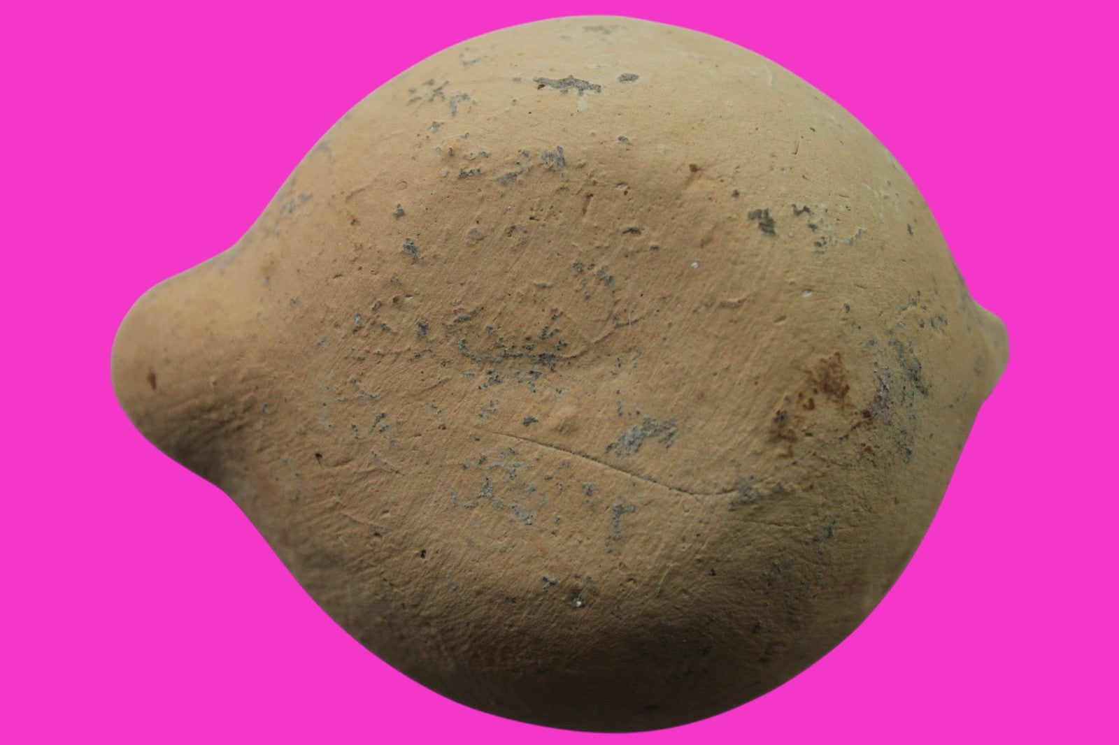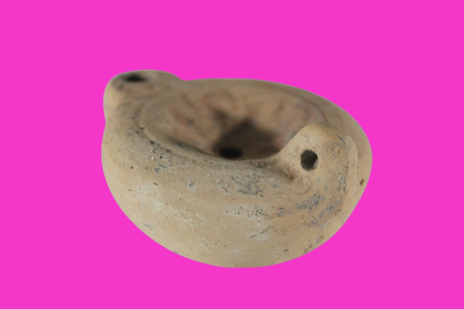 Dimensions: 1 ¼ inches tall, 3 inches long, 2 ½ inches wide, weighs 51 grams Provenance: Ex. Private Jerusalem collection, Acquired in the aftermath of the 1967 Six Day War. Acquired by John McIntosh, MSE, MBA, Ancient Artifacts & Treasures, Winter Park, Florida in 2022. Acquired by The Artifact City collection in 2025. Description: Terra Cotta oil lamp made from a two part mold. Oil from animal fat or olives were used with a wick to provide lighting. Oil lamps were mass produced in large quantities throughout the Holy Land and surrounding areas. Their use was significant in both Jewish and early Christian religious ceremonies. They were the equivalent of today’s “light bulbs”.