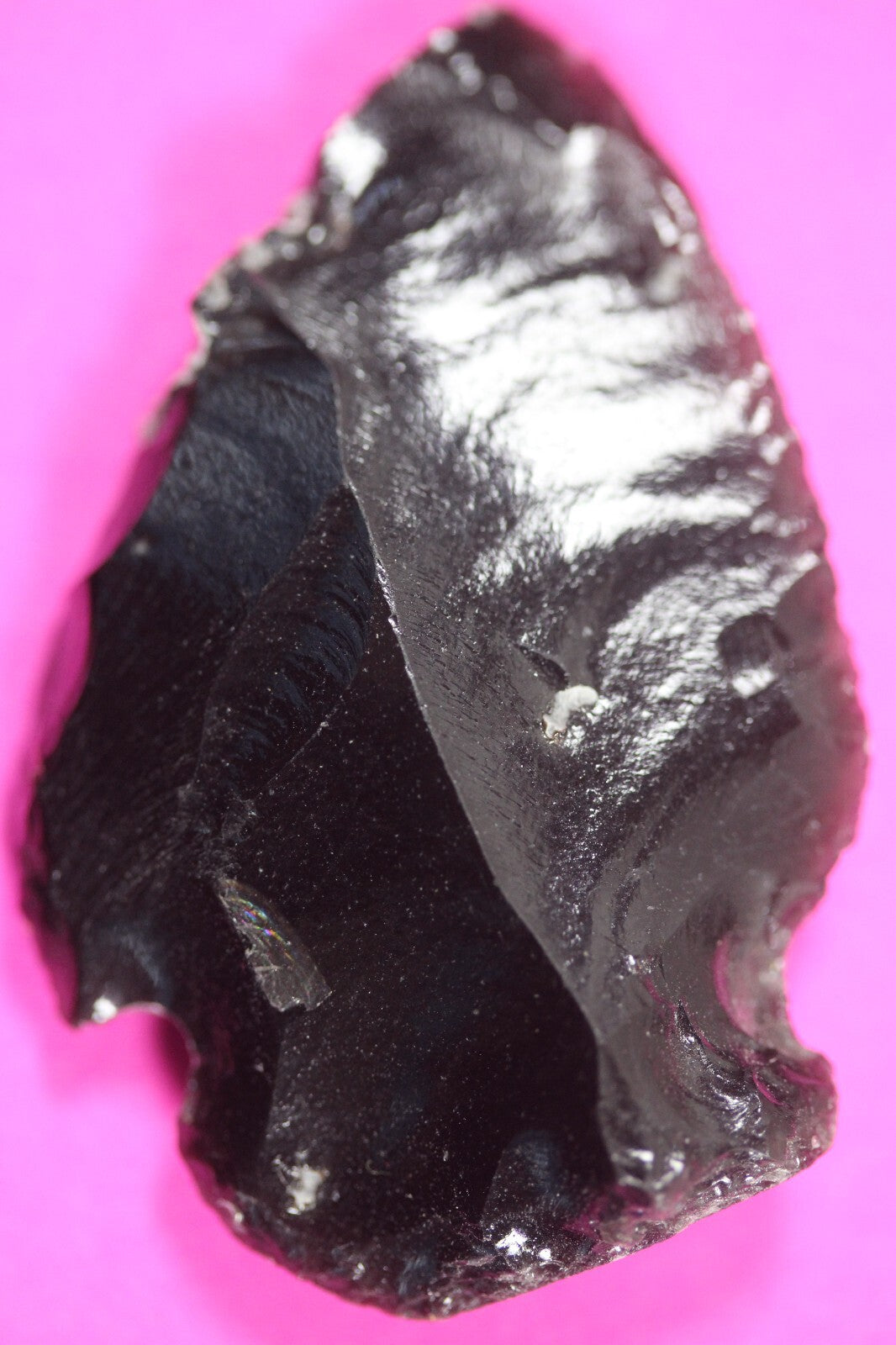 This obsidian arrowhead was excavated from an ancient battleground in Tenochtitlan, Mexico (Mexico City). Provenance: Ex. Borenstein Art Gallery, New Orleans, 1960’s to 1970’s. Ex. Ancient Artifacts & Treasures, Winter Park, FL, acquired in 2004.This arrowhead was used by Montezuma’s Aztec Warriors against Cortez’s Spanish Conquistadors in 1521 AD during the fall of Tenochtitlan. This was the Aztec’s last stand against Cortez.Obsidian arrowheads had no chance against the Conquistadors armor.The Aztecs were annihilated. This battle marked the end of the once mighty Aztec Empire.