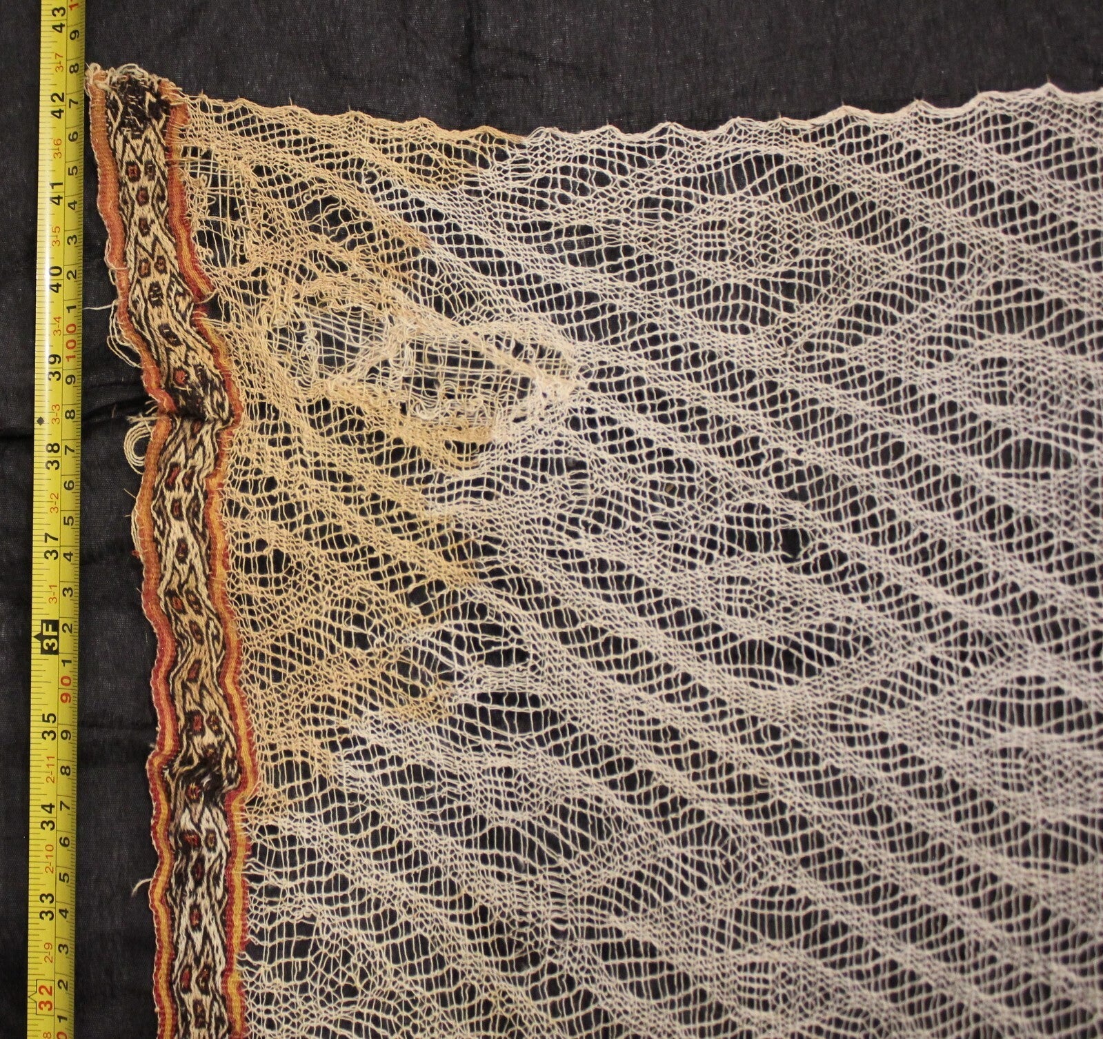 Authentic Pre Columbian Artifact Chancay Lace Textile Shroud Spooky Spirits COA
