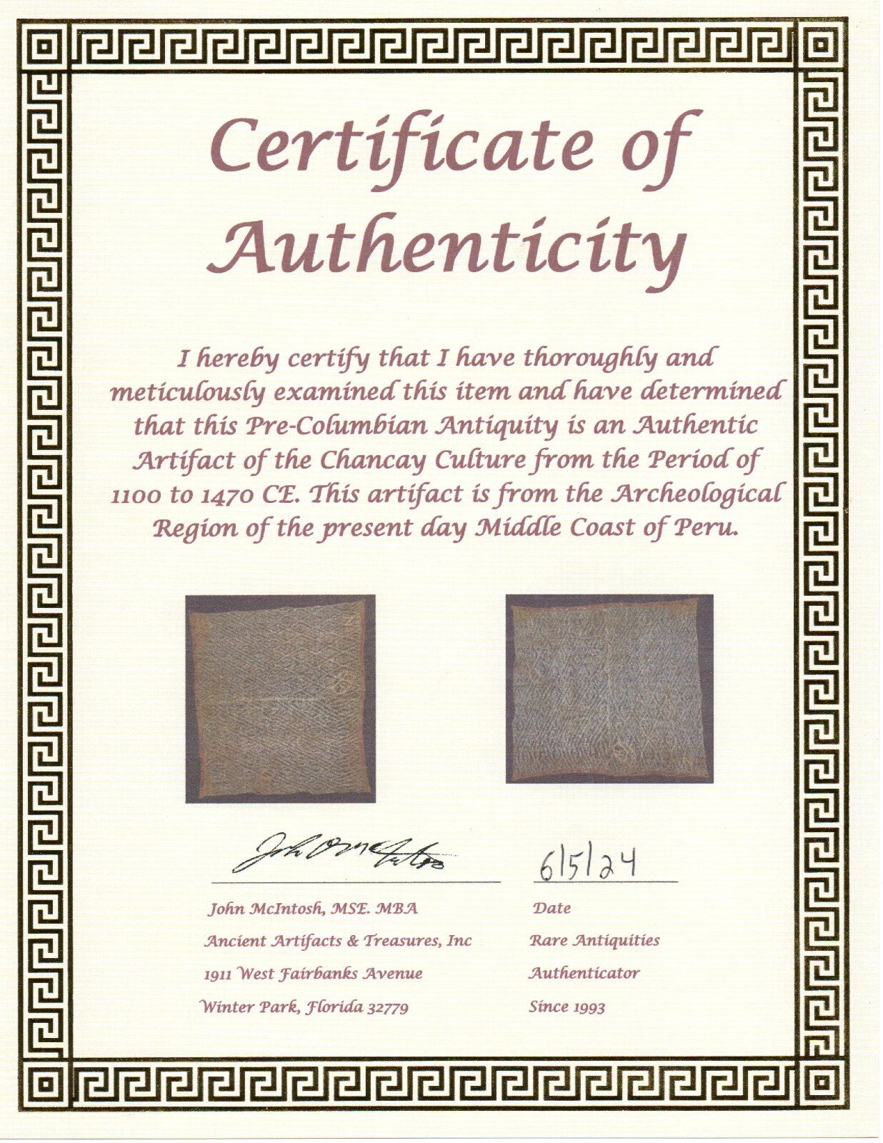 AUTHENTICITY VERIFIED BY: John McIntosh, MSE, MBA