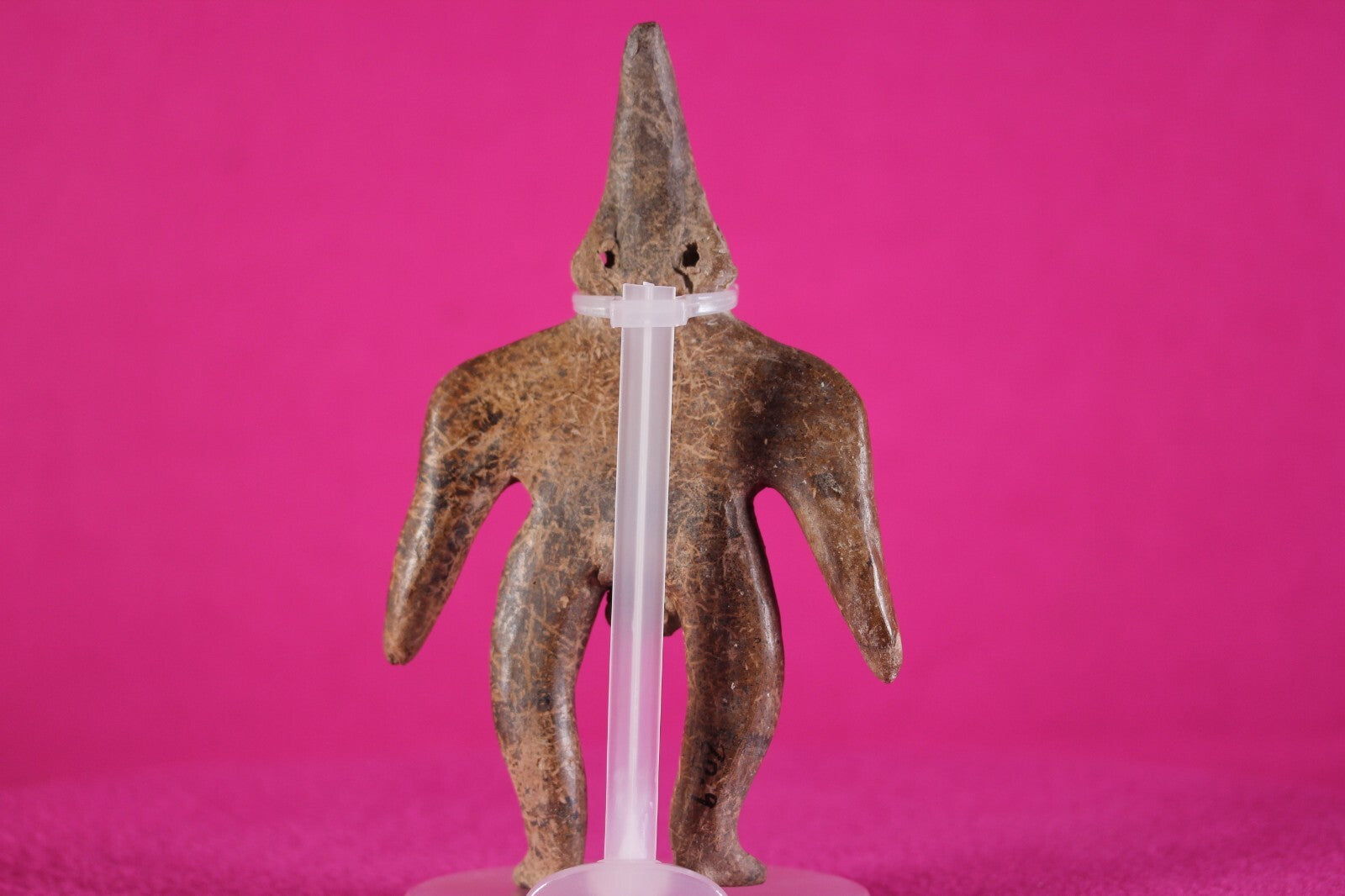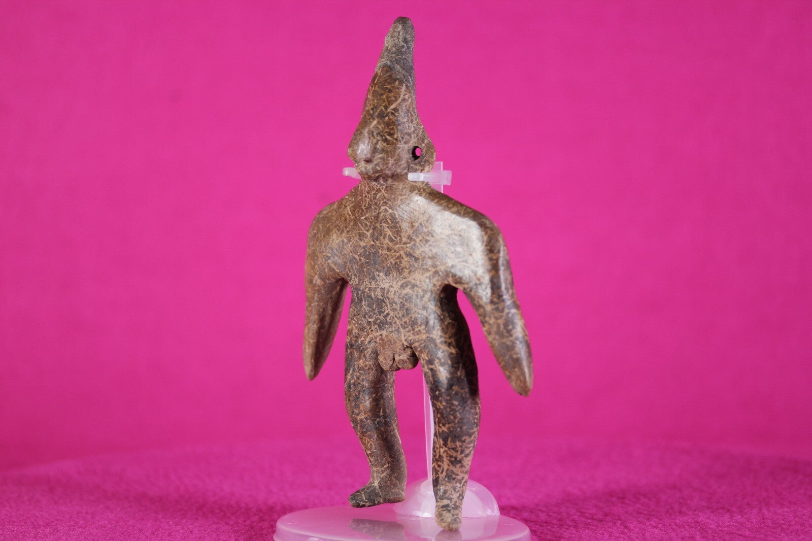 Outstanding condition. Very rare in this condition. No repairs or damage found. The Colima culture buried their fallen with figurines like this stunning example so the deceased would have companionship in the afterlife. A shaft was dug a few feet and a tomb dug out at the bottom of the shaft. The deceased was gently lowered down the shaft with the burial buddy into the tomb.