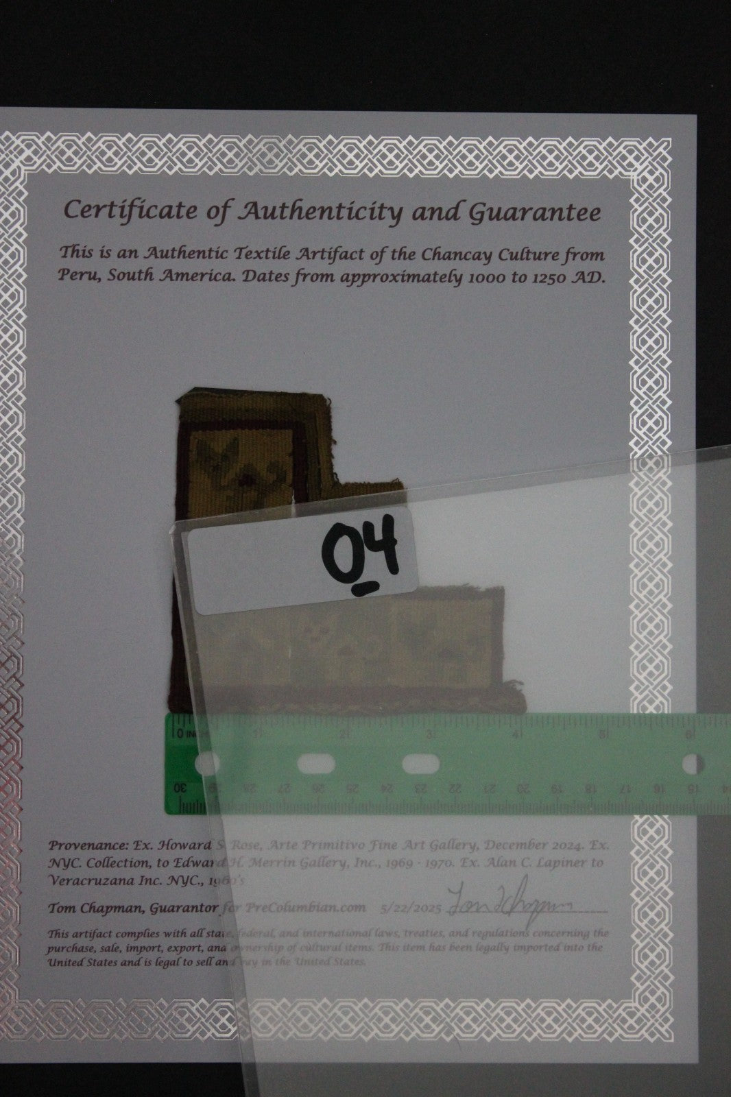 Pre Columbian Authentic Artifact Frameable Textile Border Chancay Peru COA 04