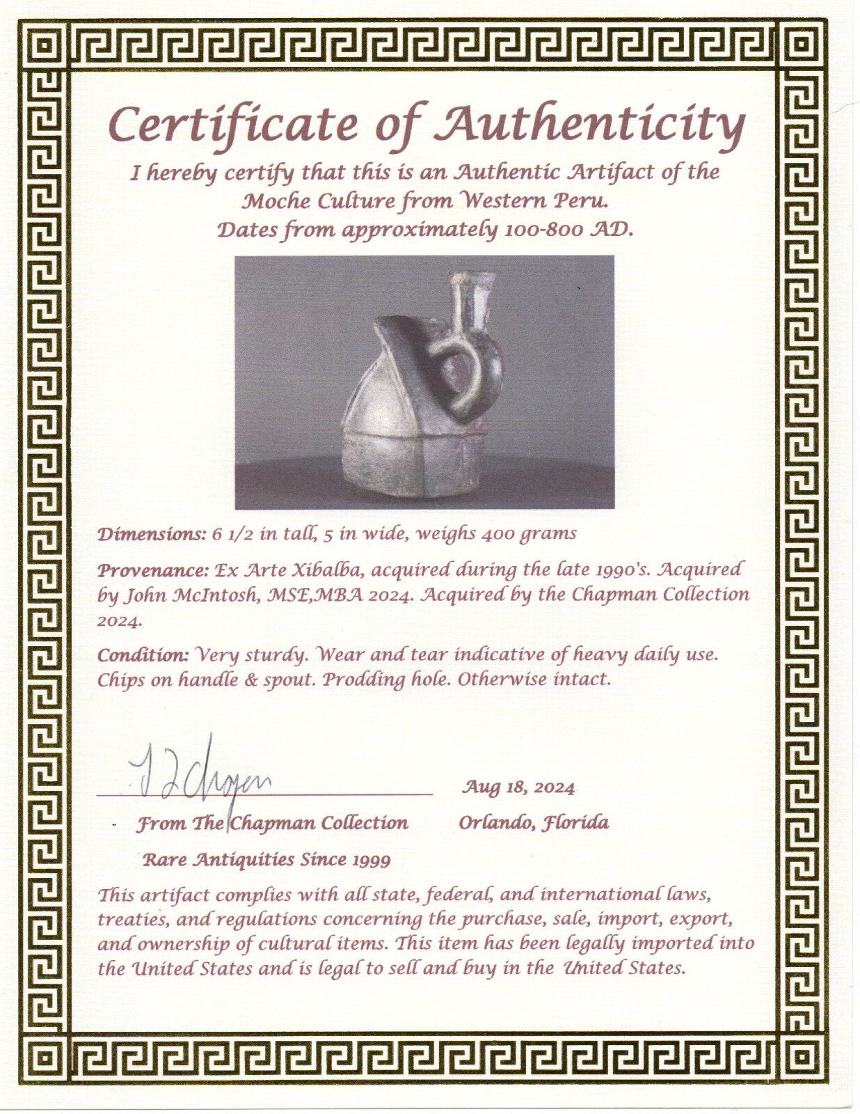 Pre Columbian Authentic Artifact House Stirrup Vessel Moche Peru COA J66