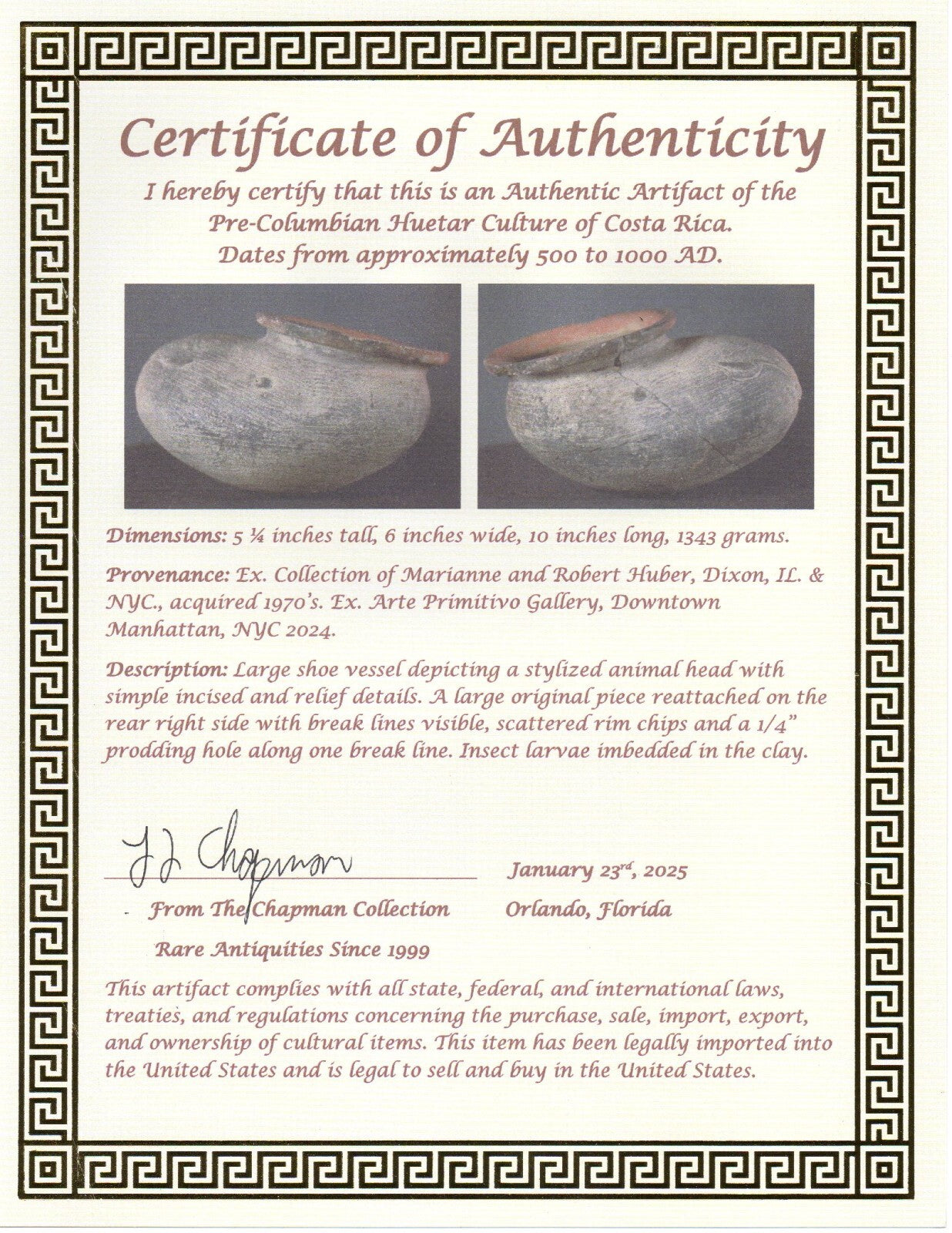 Pre Columbian Authentic Artifact Huetar Shoe Vessel Ex Arte Primitivo COA T21