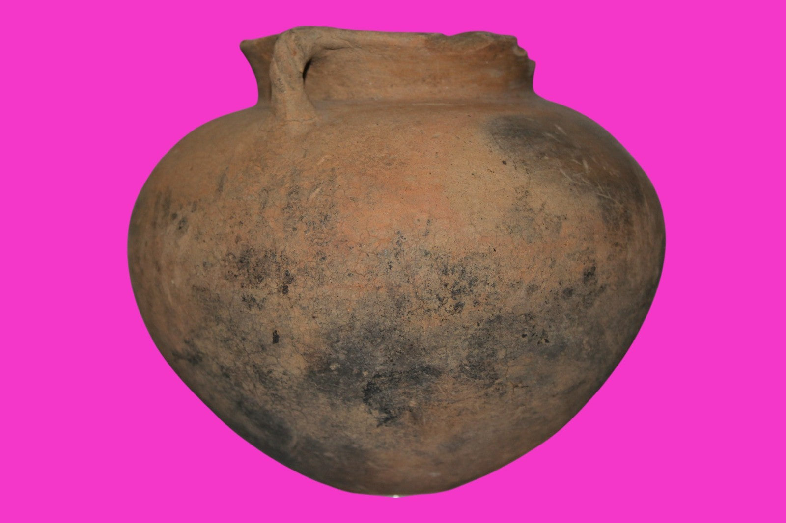 Dimensions: 5 ½ inches tall, 6 ½ inches wide, weighs 720 grams Description: Large tan colored olla with two handles. Multiple age cracks. Loss to the rim. Small rim chips, wear and tear consistent with age and everyday use. Intact. No repairs or restorations were found. Overall fair condition. Manganese Dioxide Reactivity Test Results: A solution of laboratory grade 40% hydrogen peroxide was applied to multiple manganese blooms that resulted in a strong chemical reaction indicating approximately 1000 years of underground burial. Provenance: Ex. Private Miami, Florida collection. Acquired in the 1970’s. Acquired by John McIntosh, MSE, MBA, Ancient Artifacts & Treasures, Winter Park, Florida in 2021. Consigned to The Artifact City Collection on 7/03/2025.