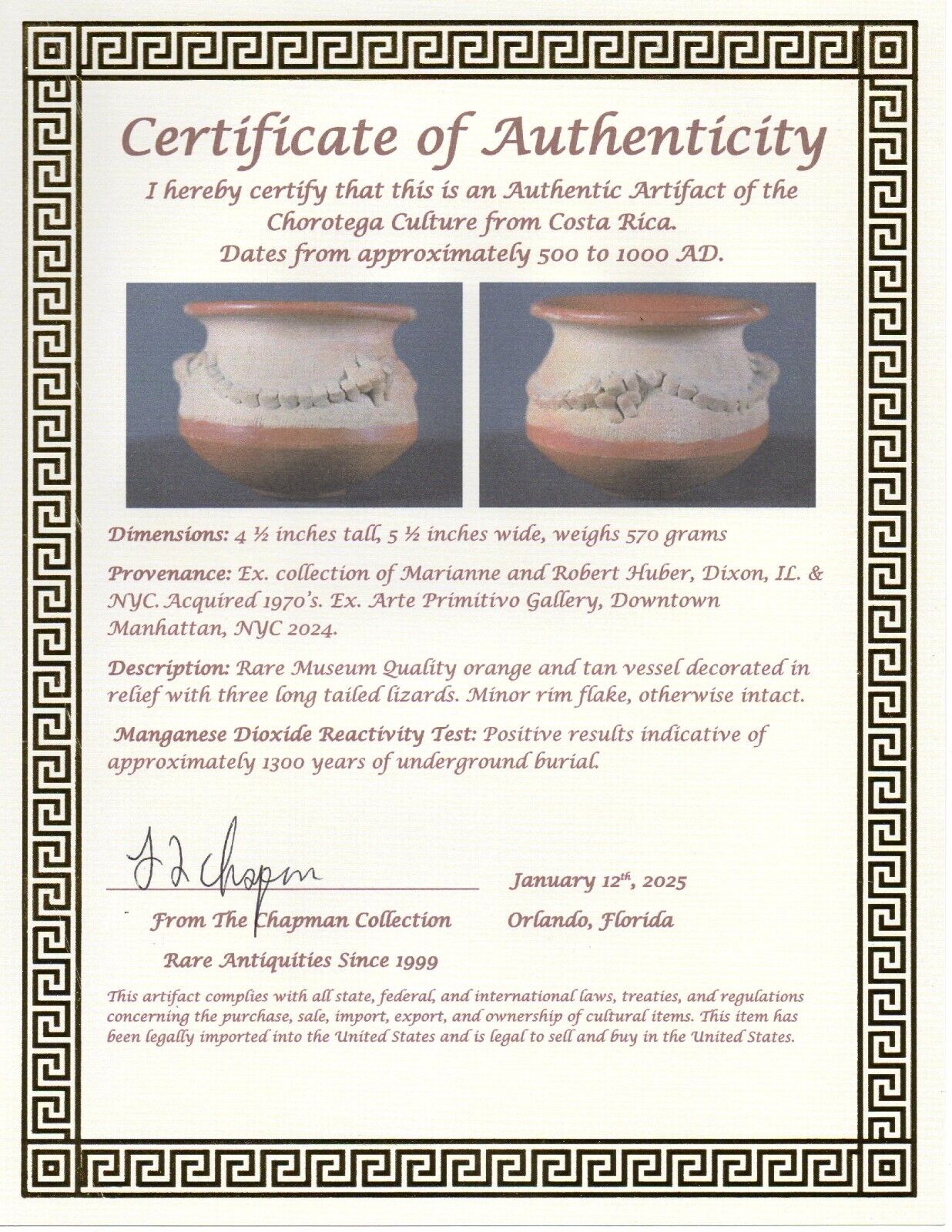 Authentic Pre Columbian Artifact Lizard Jar Chorotega Ex Arte Primitivo COA T120