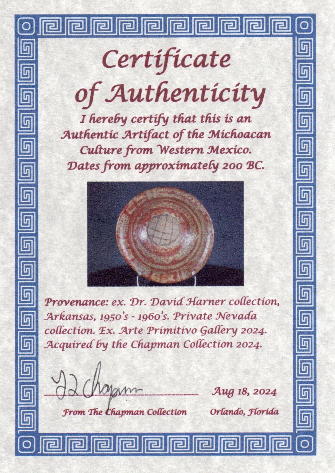 Authentic Pre Columbian Artifact Michoacan Tripod Bowl Ex Arte Primitivo COA T27