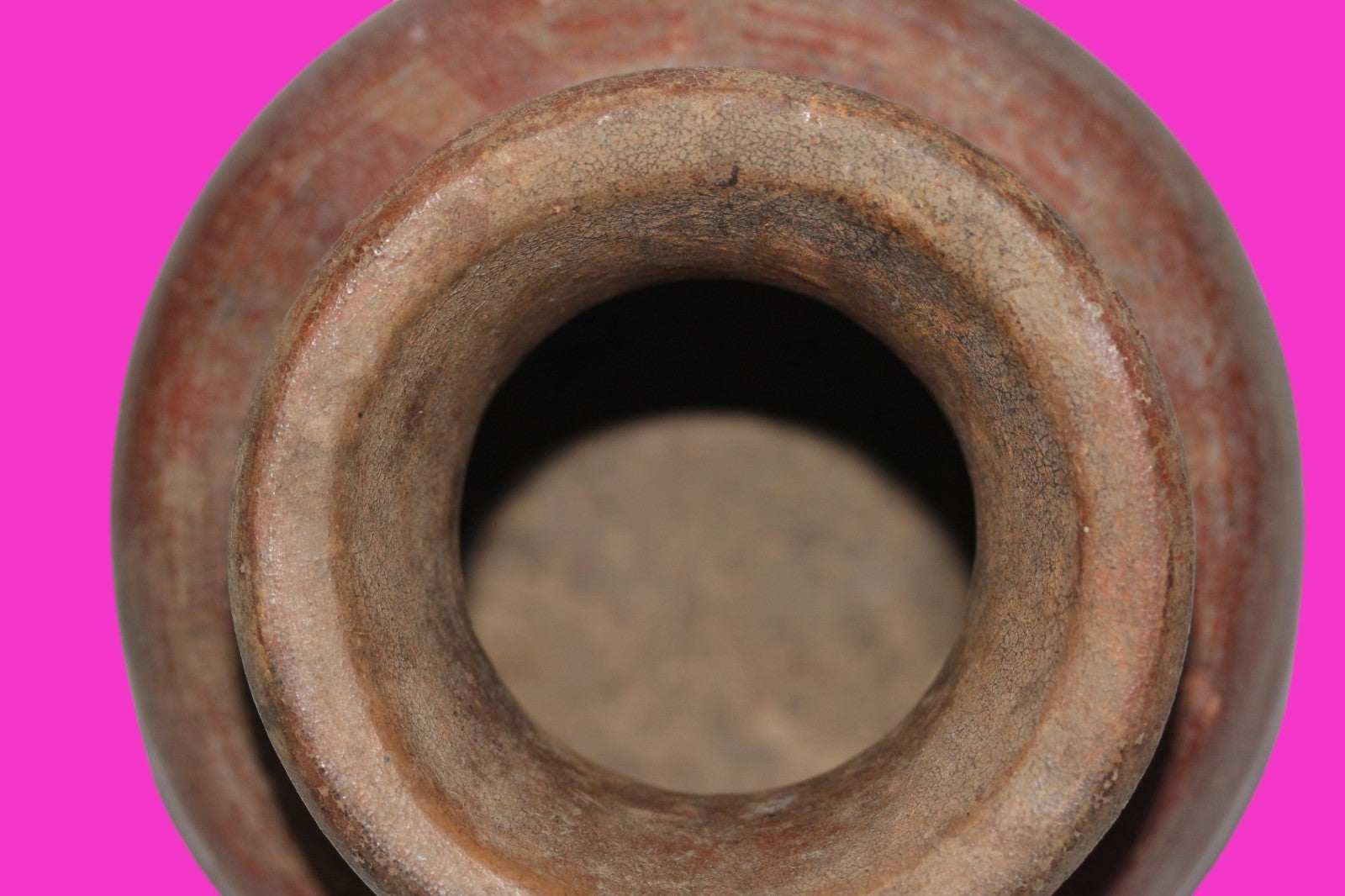 Dimensions: 5 ¾ inches tall, 6 ¼ inches wide, weighs 820 grams Provenance: Ex. Arte Xibalba. Acquired by John McIntosh, MSE, MBA, Ancient Artifacts & Treasures, Winter Park, Florida in 2021. Consigned to The Artifact City Collection on 7/03/2025. Description: Orangeware olla with traces of red painted bands around the body. Small rim chips, wear and tear consistent with age and everyday use. Intact. No repairs or restorations were found. Overall excellent condition. Manganese Dioxide Reactivity Test Results: A solution of laboratory grade 40% hydrogen peroxide was applied to multiple manganese blooms that resulted in a strong chemical reaction indicating approximately 1500 years of underground burial.