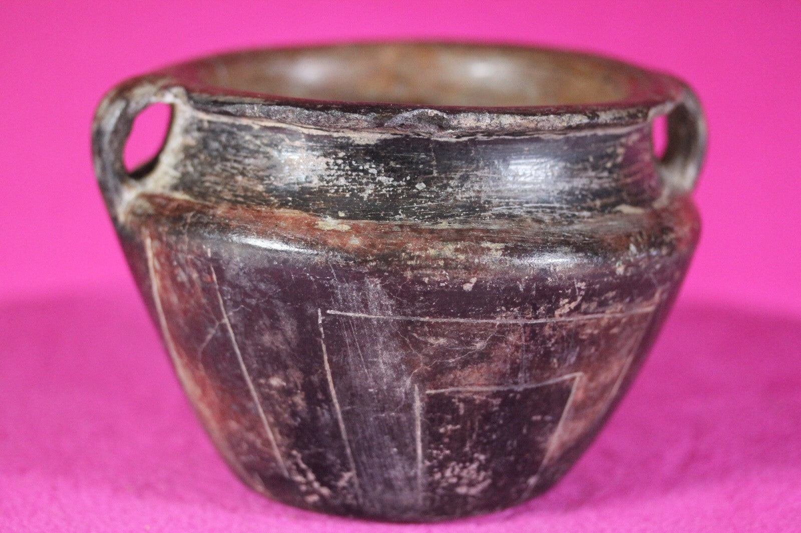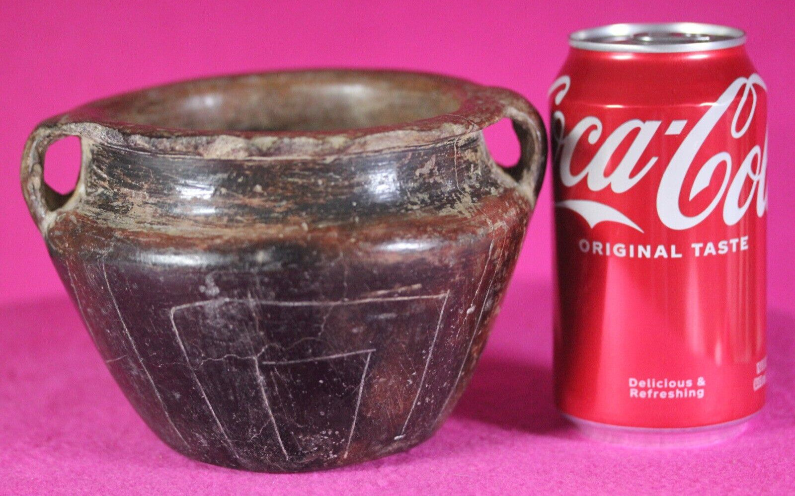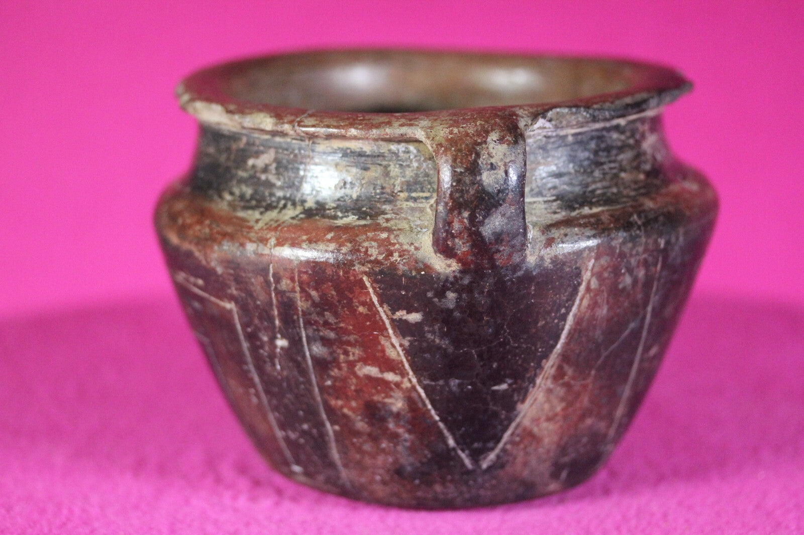 Provenance: Ex. Karob collection, Margarete Wells, Boston, MA. Acquired 1965. Ex. Arte Primitivo Gallery, Downtown Manhattan, New York City. Acquired by The Chapman Collection in 2024, # 176659.Condition: Five ancient rim chips, and a stable hair line from the rim. Very sturdy and solid.Manganese Dioxide Reactivity Test: Positive results indicative of approximately 2000 years of underground burial.