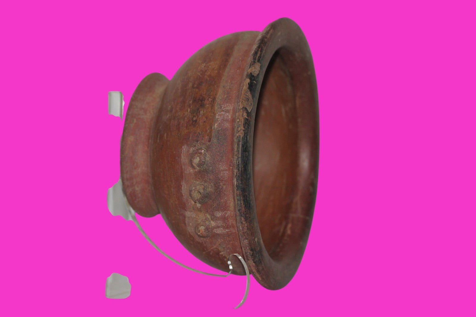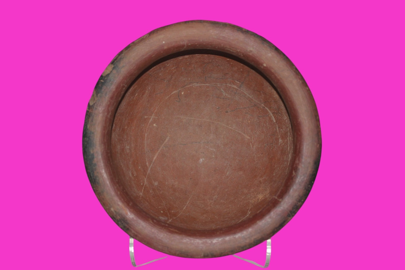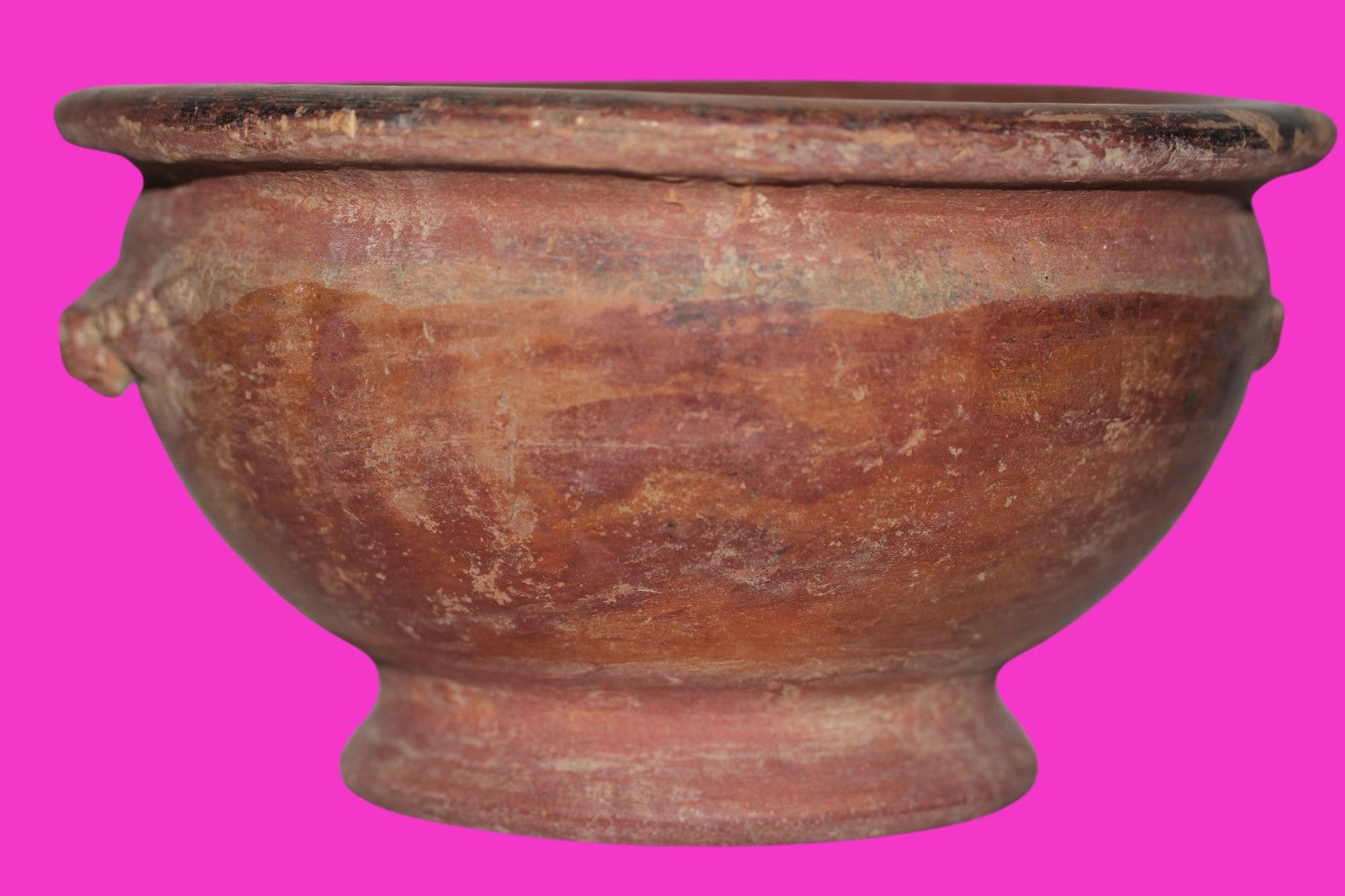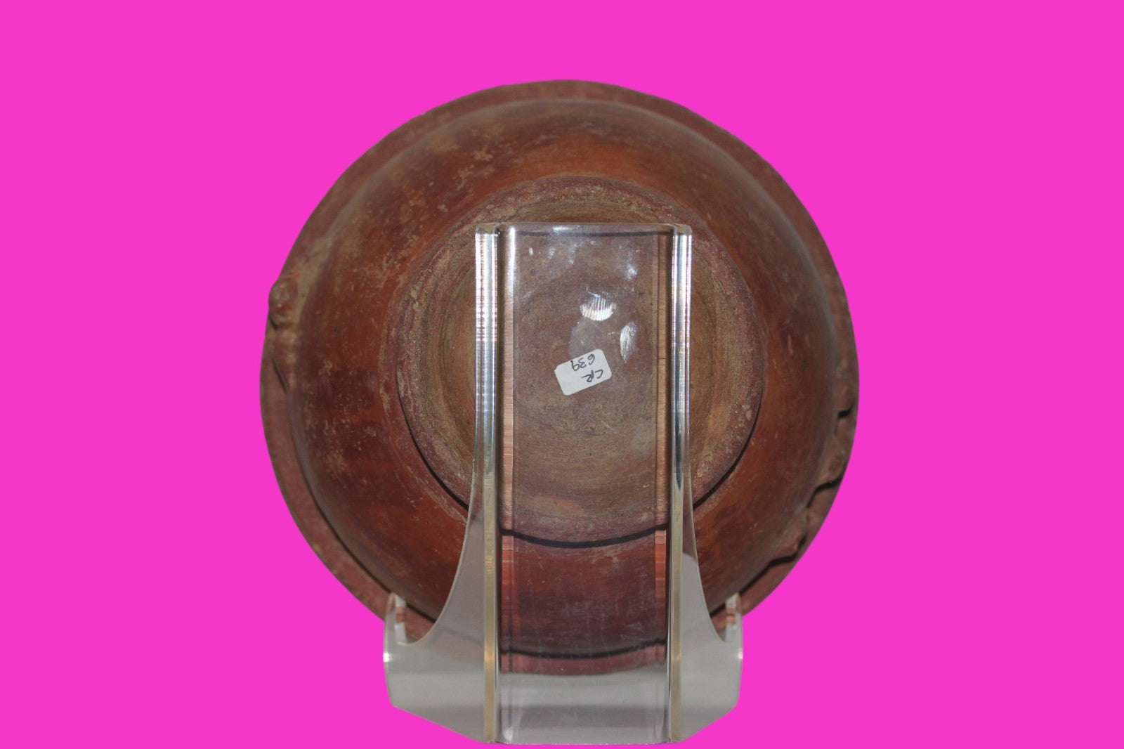 Dimensions: 4 ¼ inches tall, 7 ¾ inches wide, weighs 987 grams Provenance: Ex. Arte Xibalba. Acquired by John McIntosh, MSE, MBA, Ancient Artifacts & Treasures, Winter Park, Florida in 2021. Consigned to The Artifact City Collection on 7/03/2025. Description: Orangeware pedestal bowl with traces of red painted bands around the body. Small rim chips, wear and tear consistent with age and everyday use. Intact. No repairs or restorations were found. Overall excellent condition.