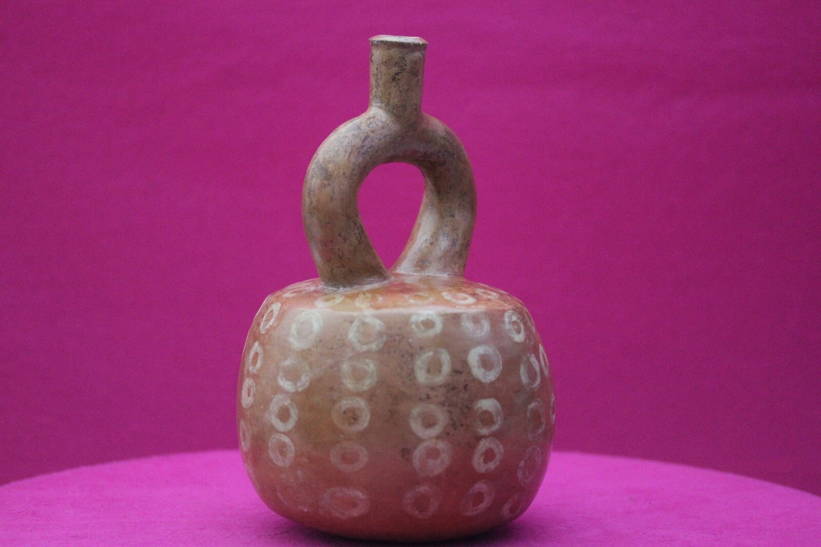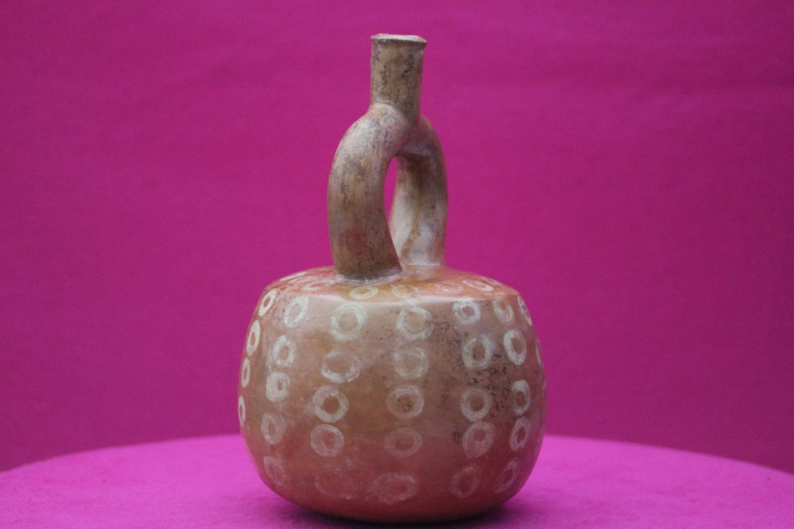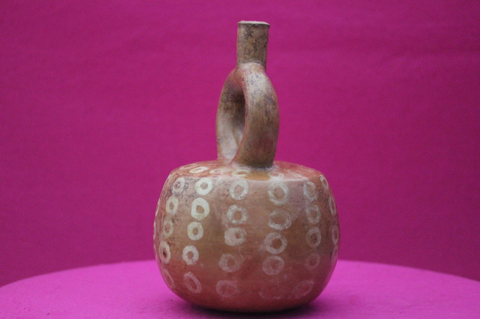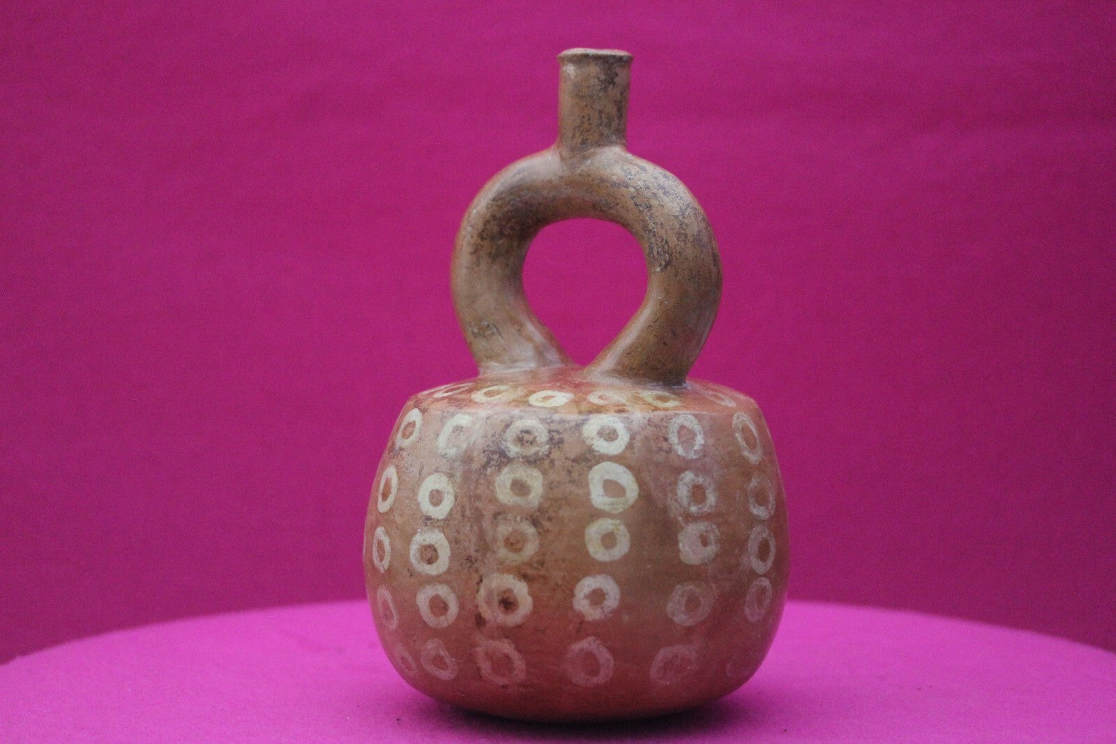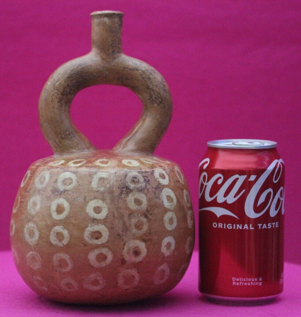 Authentic Pre Columbian Artifact Stirrup Pottery Vessel 1200AD Moche Peru T81