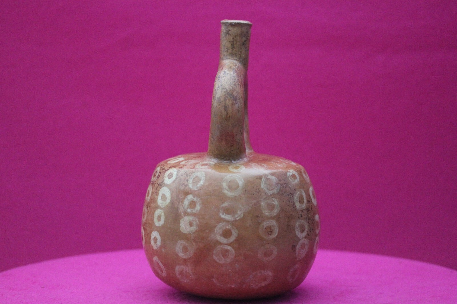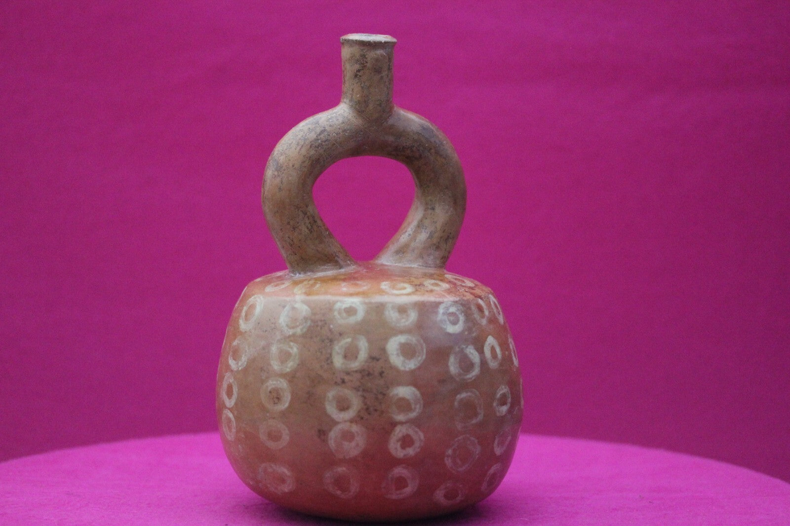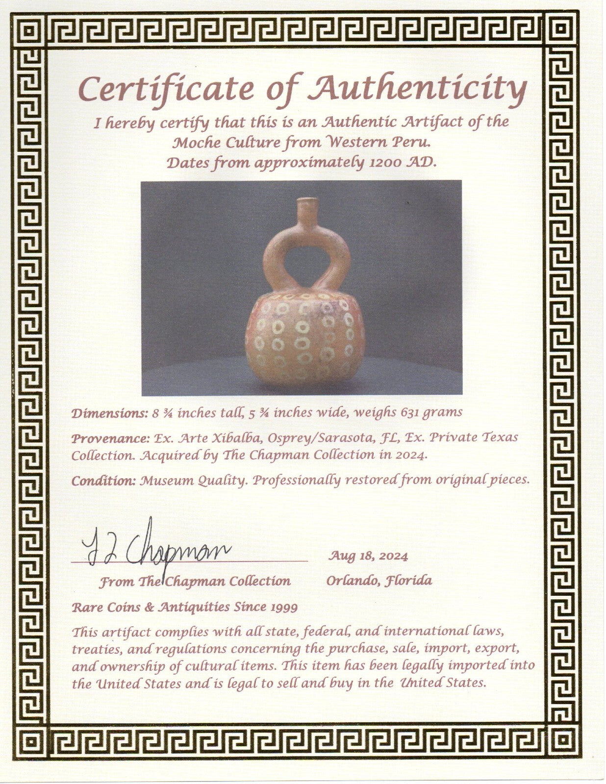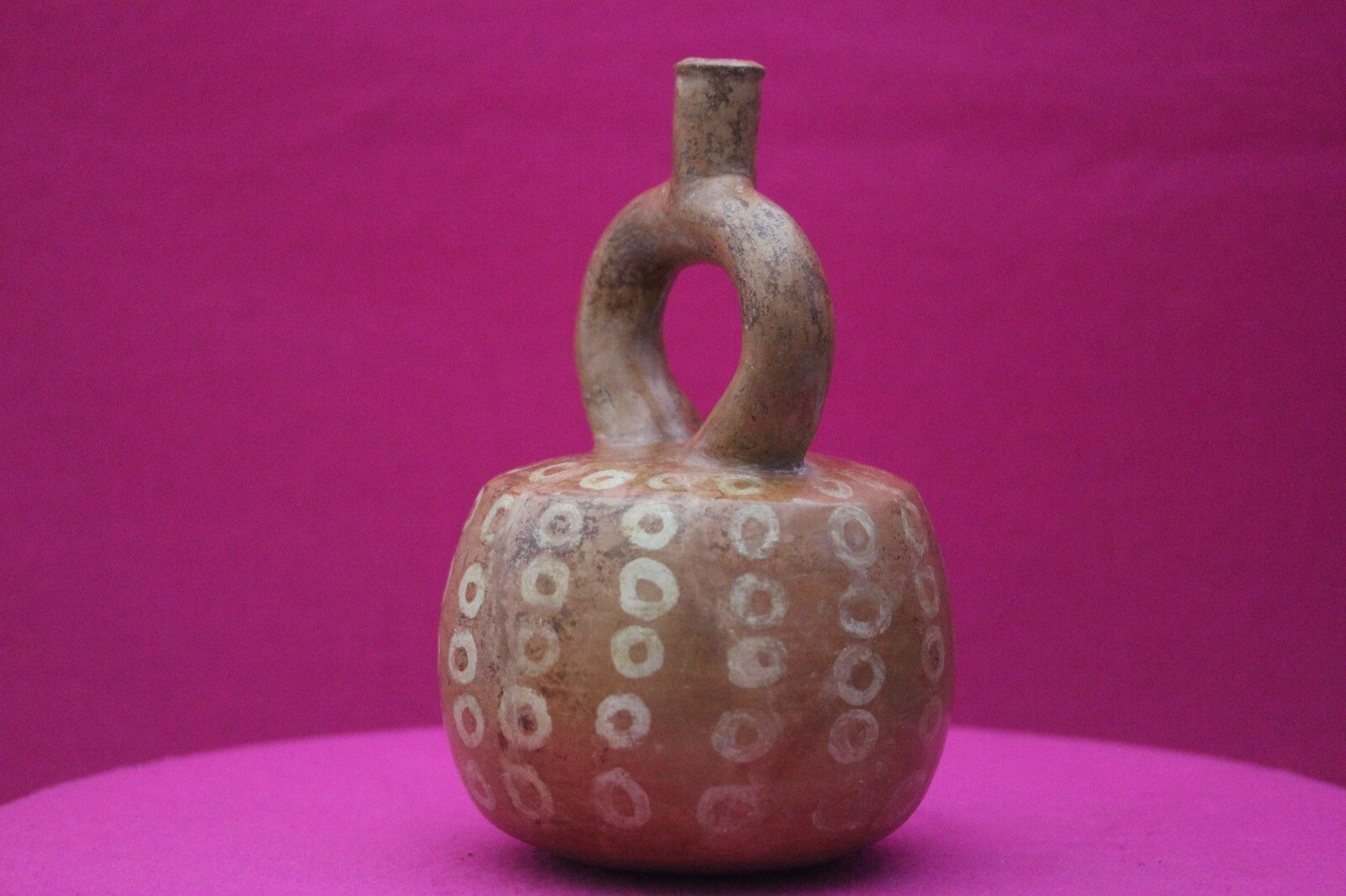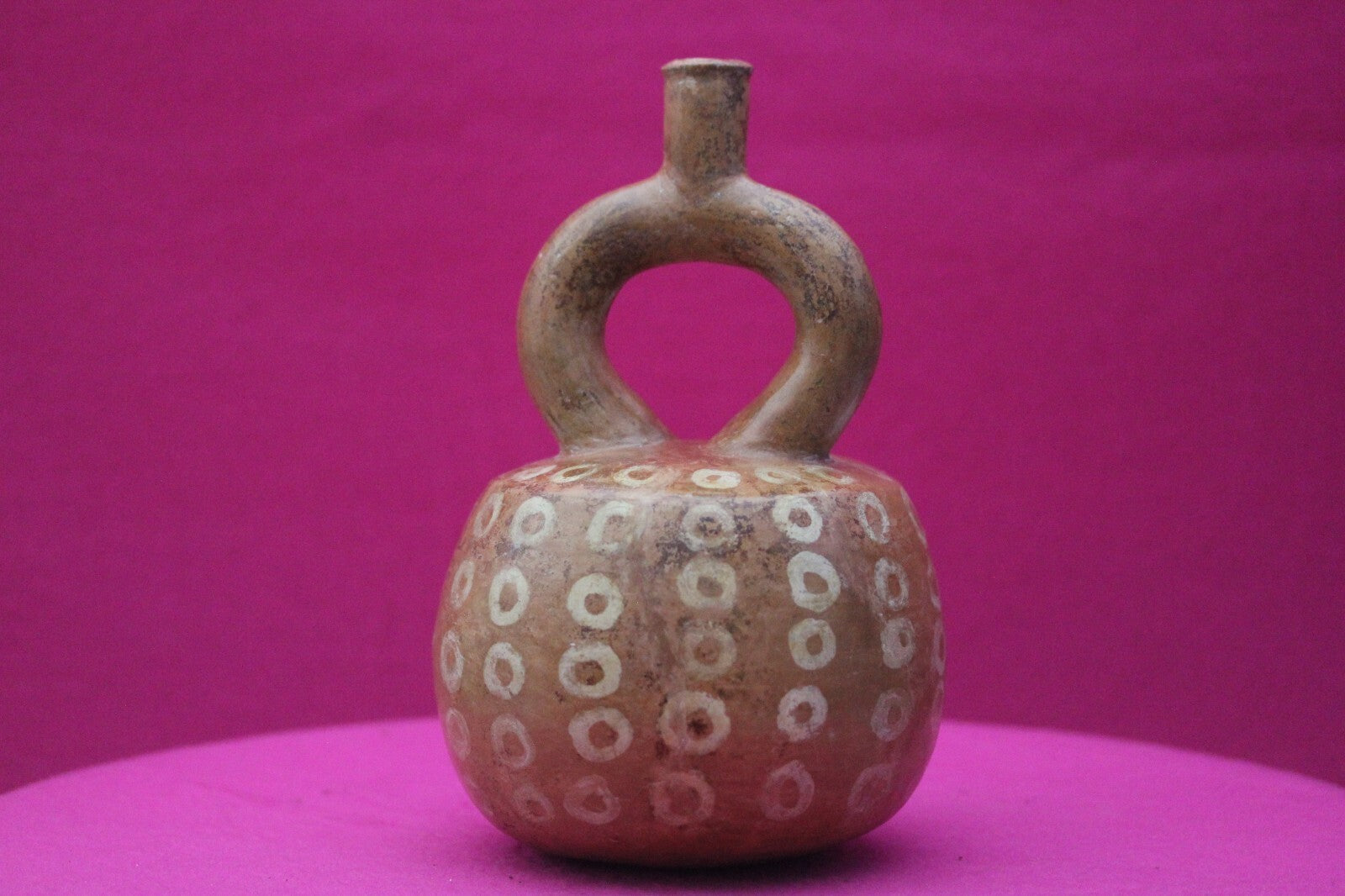 Authentic Pre Columbian Artifact Stirrup Pottery Vessel 1200AD Moche Peru T81