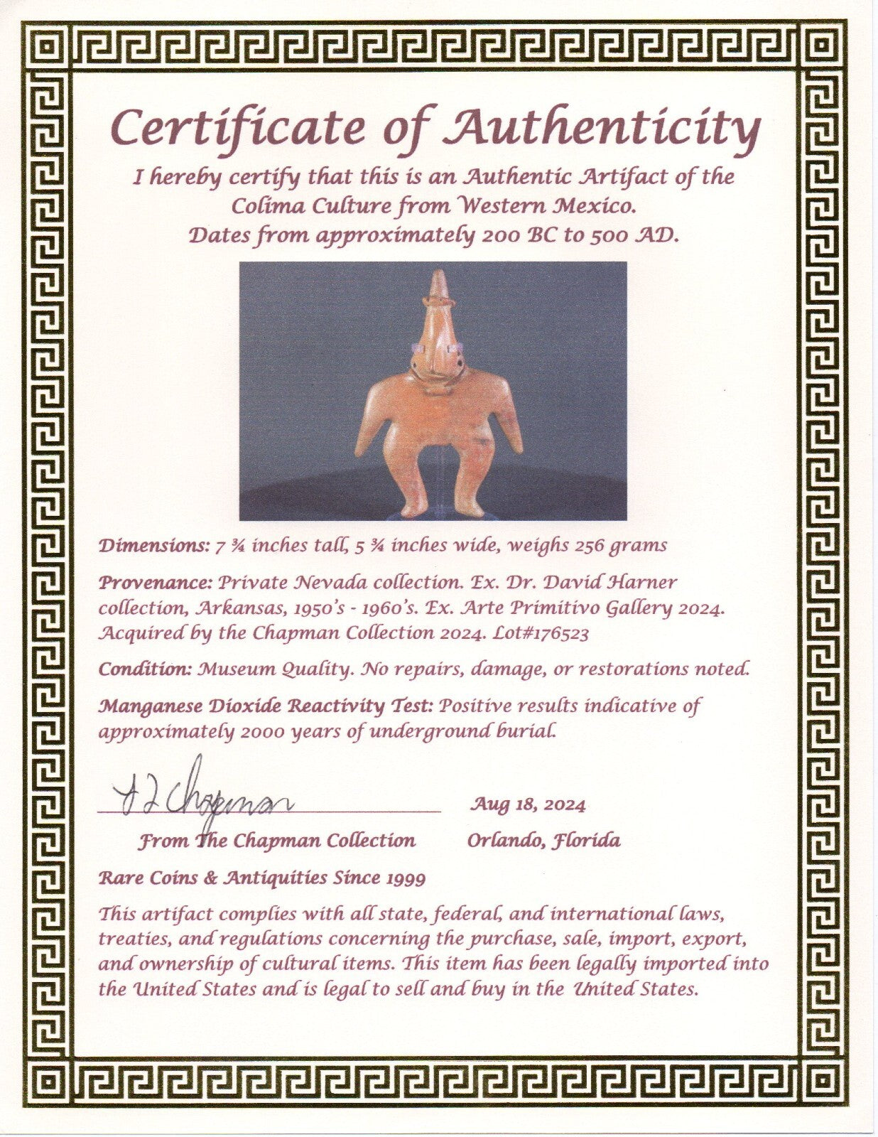 Authentic Pre Columbian Artifact Tomb Figure Colima Ex Arte Primitivo COA T45