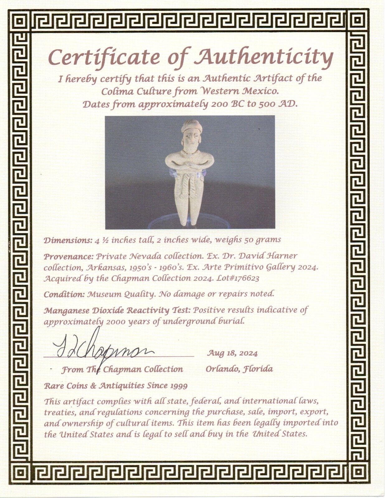 Authentic Pre Columbian Artifact Tomb Figure Colima Ex Arte Primitivo COA T96