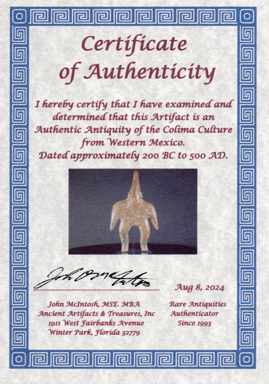 Authentic Pre Columbian Artifact Tomb Figure Colima Mexico 300BC-300AD COA T17