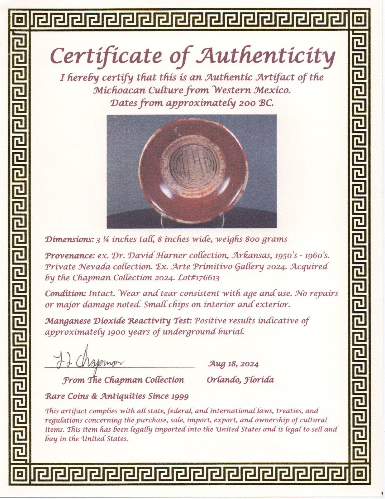 Pre Columbian Artifact Authentic Tripod Bowl Michoacan Ex Arte Primitivo COA T35