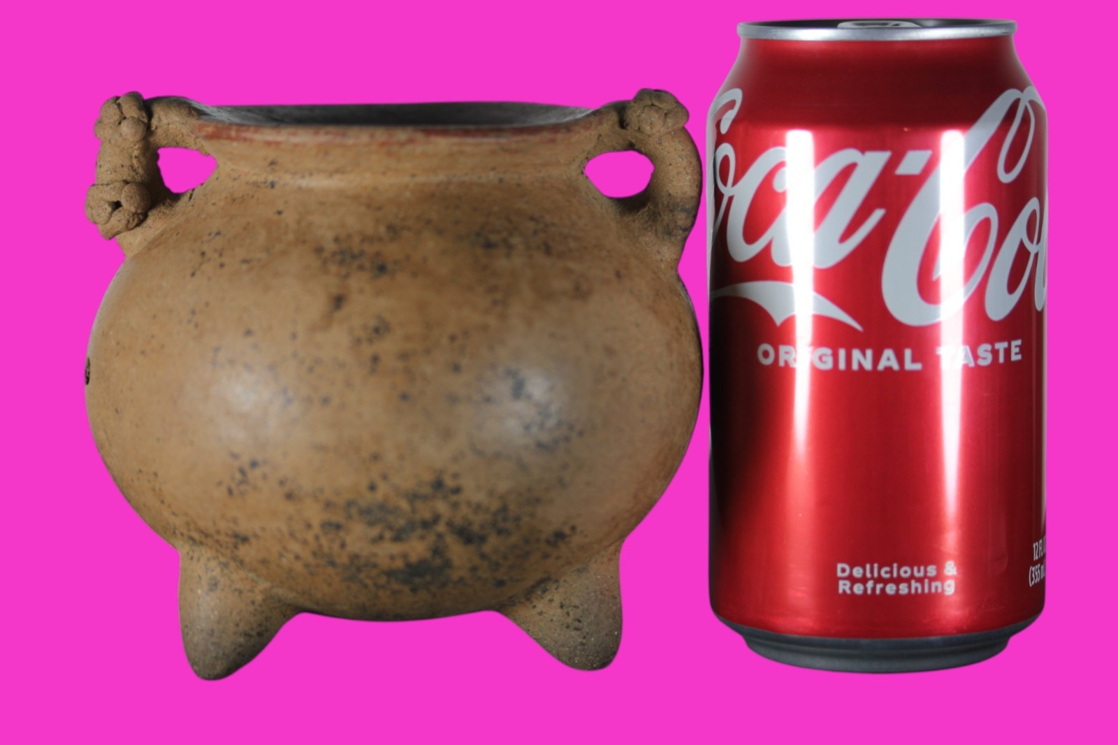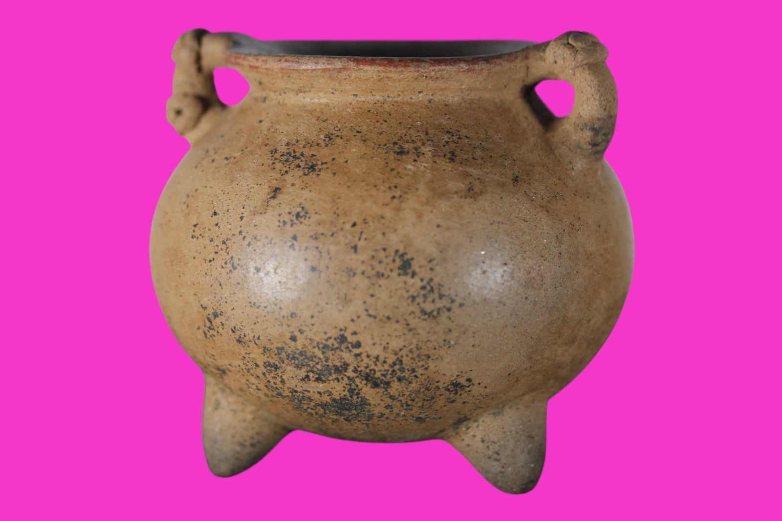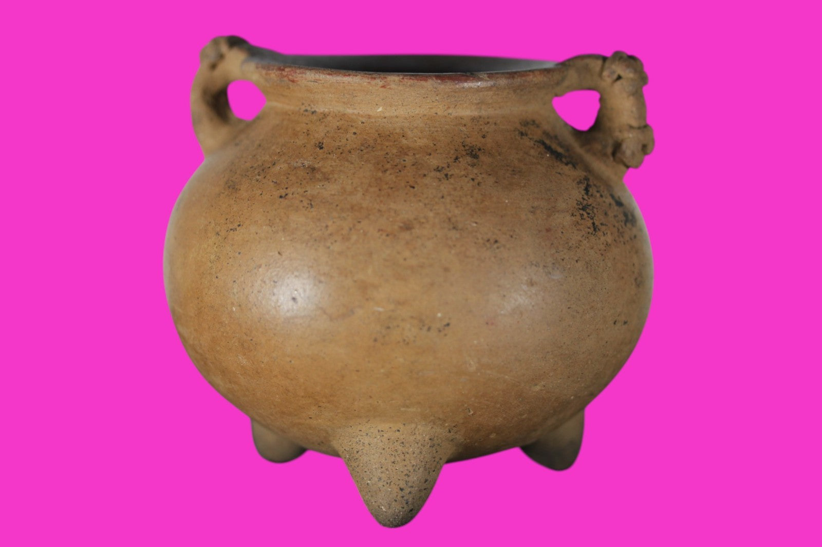 Dimensions: 4 ½ inches tall, 5 ¾ inches wide, weighs 437 gramsProvenance: Ex. Private Miami, Florida collection. Acquired in the 1970’s. Acquired by John McIntosh, MSE, MBA, Ancient Artifacts & Treasures, Winter Park, Florida in 2021. Consigned to The Pre Columbian Collection on 7/03/2025.Description: Tan colored tripod bowl with small applied decorations on two loop handles. One lower decoration lost in antiquity. Small prodding hole from the excavation process. Archaeological identification number written on the bottom. Overall Good Condition. Small rim chips, wear and tear consistent with age and everyday use. Intact. No repairs or restorations were found. Manganese Dioxide Reactivity Test Results: A solution of laboratory grade 40% hydrogen peroxide was applied to multiple manganese blooms that resulted in a strong chemical reaction indicating approximately 1500 years of underground burial.