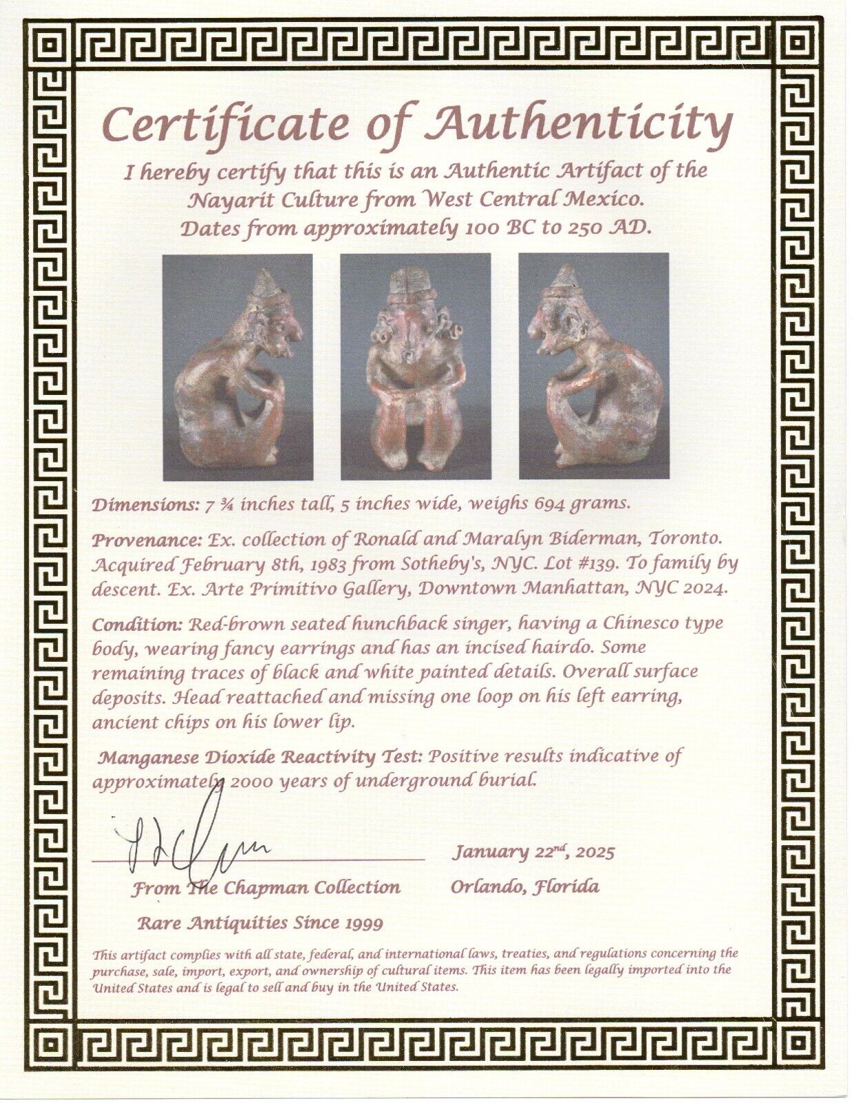 Ex Sotheby's Authentic Pre Columbian Artifact Nayarit Hunchback Figure COA T117