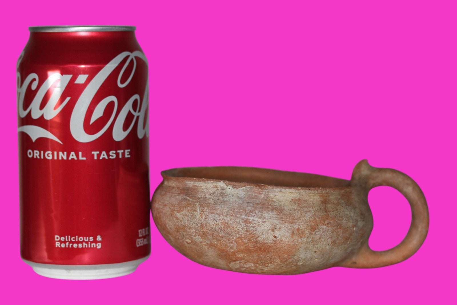 Dimensions: 2 inches tall, 5 ½ inches wide, weighs 185 grams Provenance: Ex. Private Jerusalem collection, Acquired in the aftermath of the 1967 Six Day War. Acquired by John McIntosh, MSE, MBA, Ancient Artifacts & Treasures, Winter Park, Florida in 2022. Acquired by The Artifact City collection in 2025. Description: Redware horned handle cup. Mineral deposits indicative of approximately 4000 years of underground burial. Small rim chips and surface loss. No repairs or restorations found. Overall Outstanding condition. Genesis 17:7-8 “I will always keep the promise I have made to you and your descendants, because I am your God and their God. I will give you and them the land in which you are now a foreigner. I will give the whole land of Canaan to your family forever, and I will be their God. “
