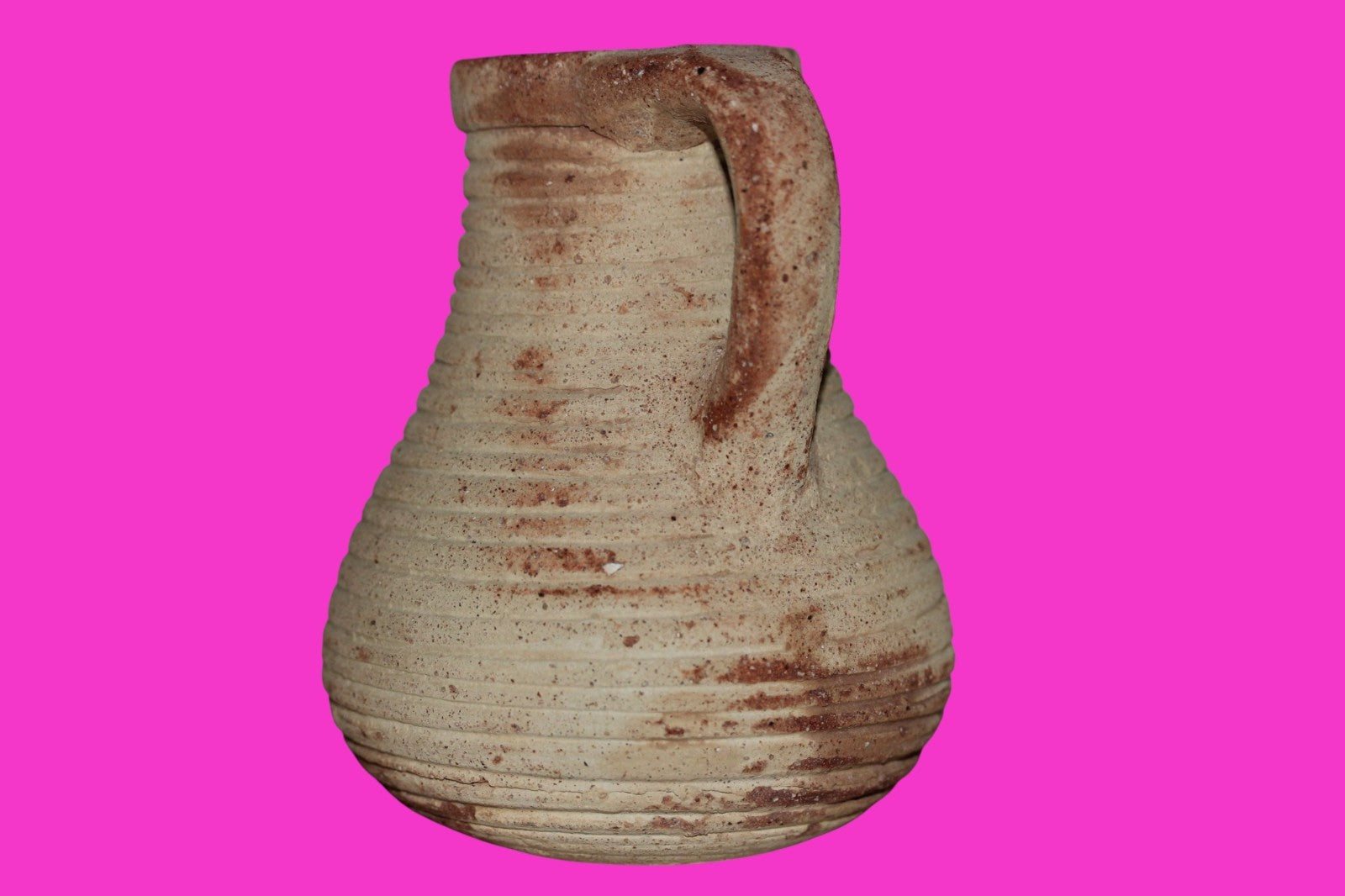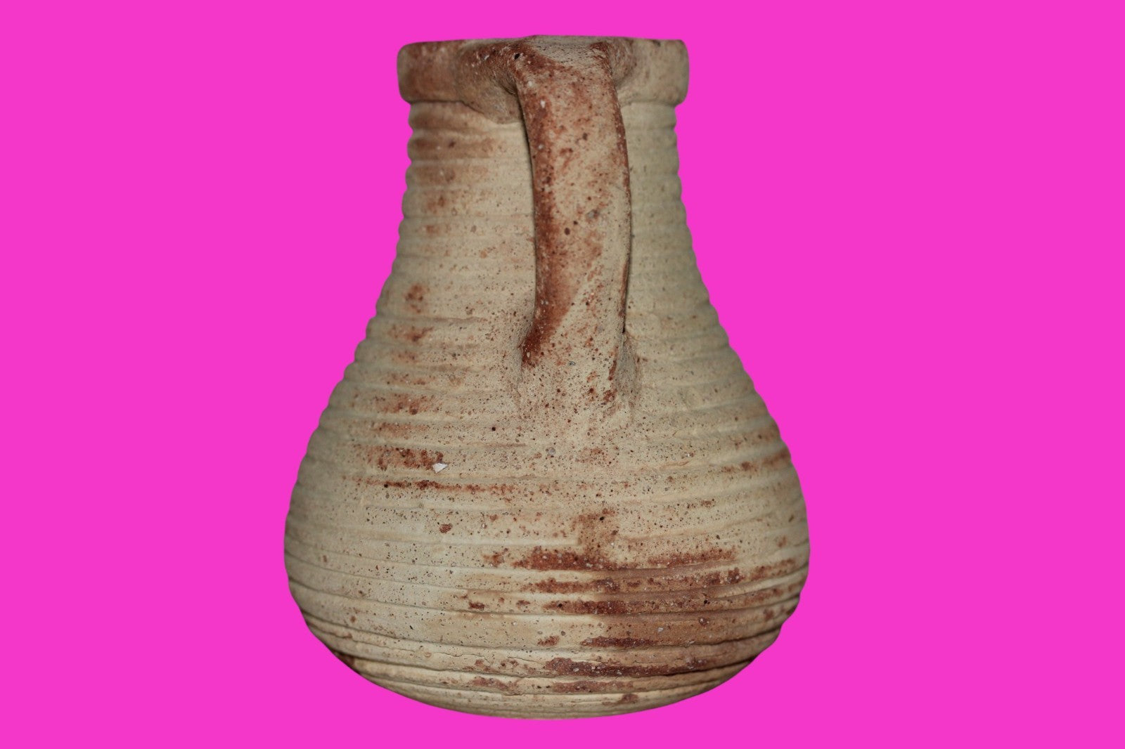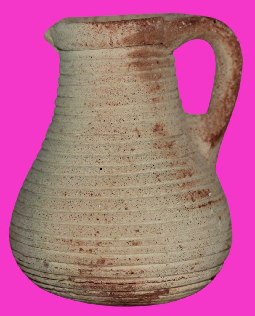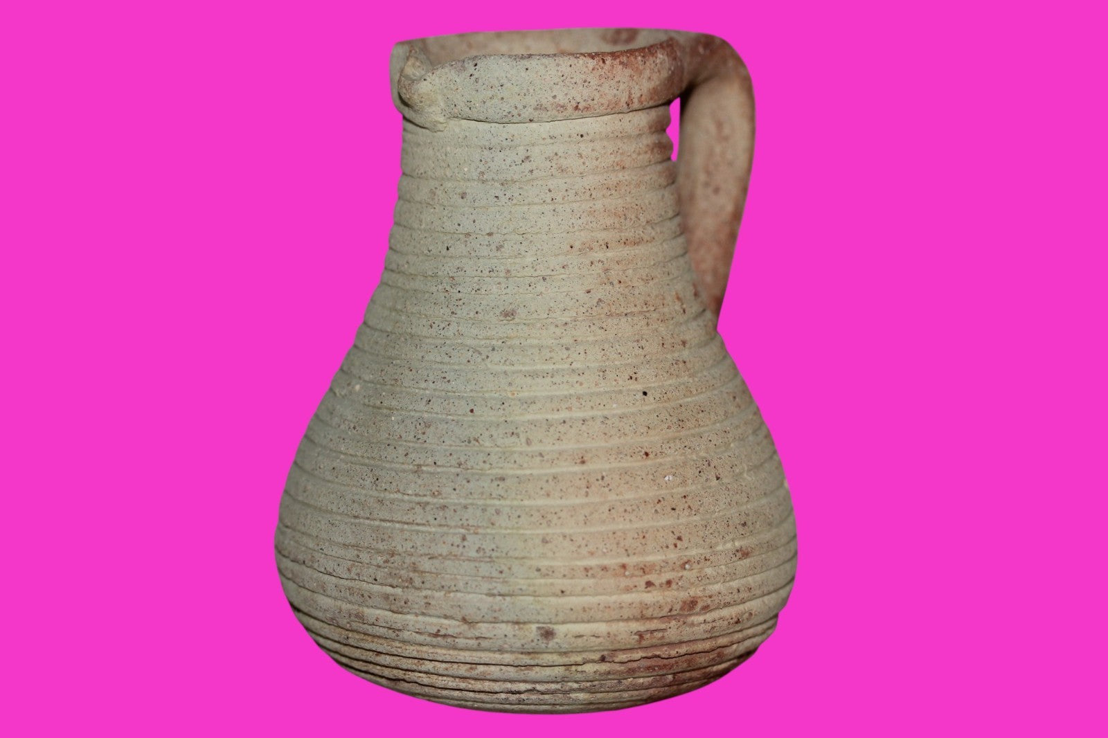 Dimensions: 4 ¼ inches tall, 3 ½ inches wide, weighs 267 grams Provenance: Ex. Private Jerusalem collection, Acquired in the aftermath of the 1967 Six Day War. Acquired by John McIntosh, MSE, MBA, Ancient Artifacts & Treasures, Winter Park, Florida in 2022. Acquired by The Artifact City collection in 2025. Description: Museum quality redware ribbed juglet with most of it’s cream paint remaining. Mineral deposits indicative of approximately 2000 years of underground burial. Minimal wear from use. No repairs or restorations found. Overall Outstanding condition. John 3:16 "For God so loved the world, that he gave his only Son, that whoever believes in him should not perish but have eternal life".