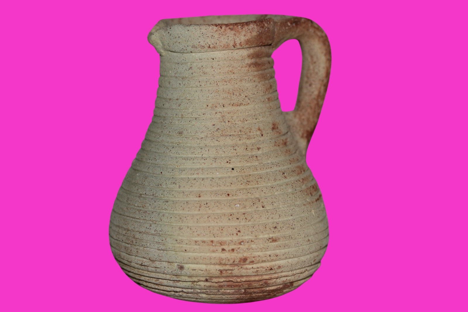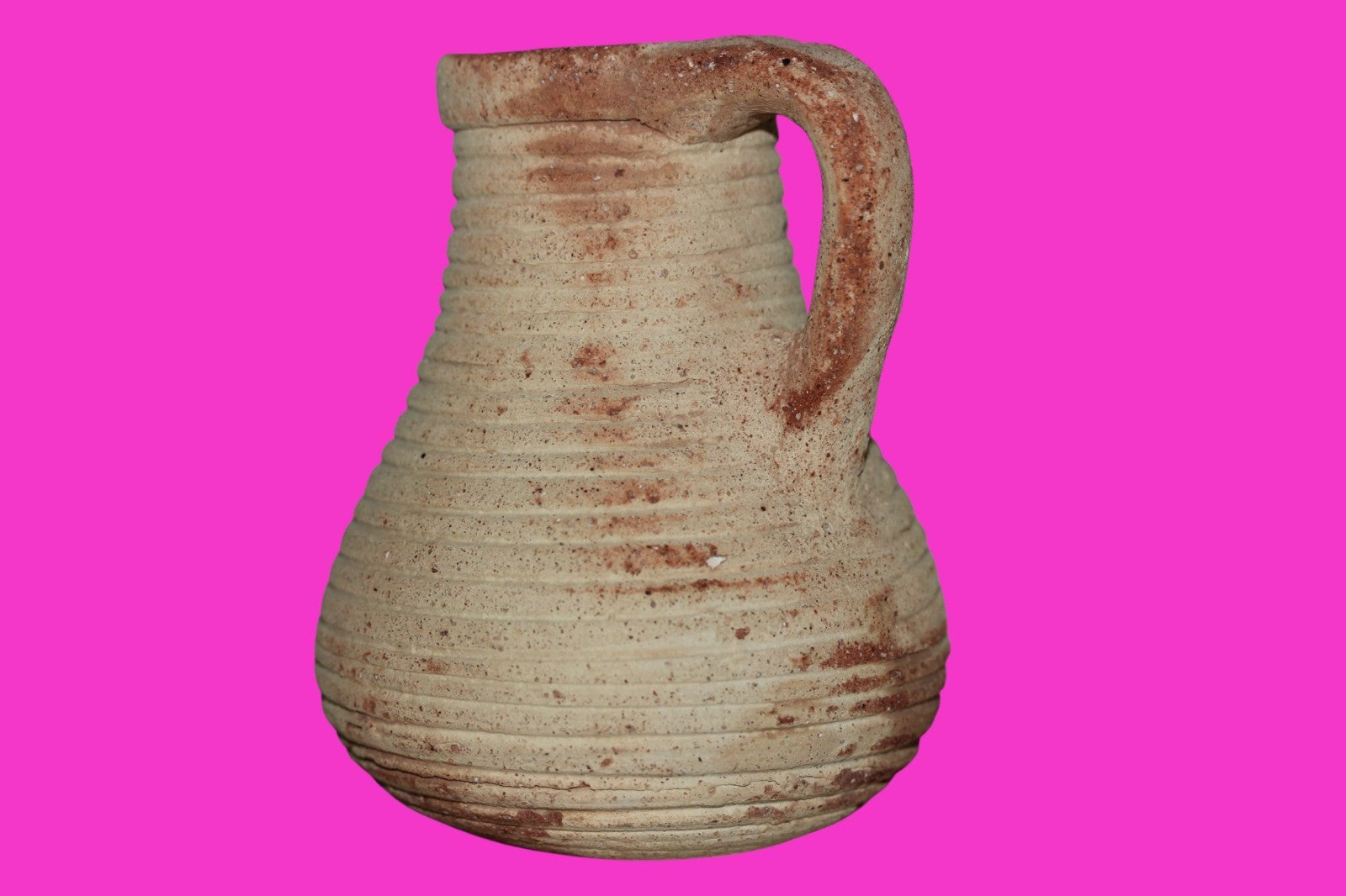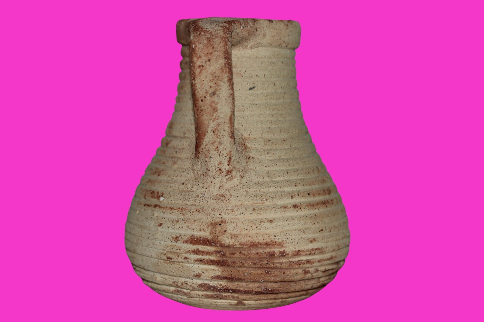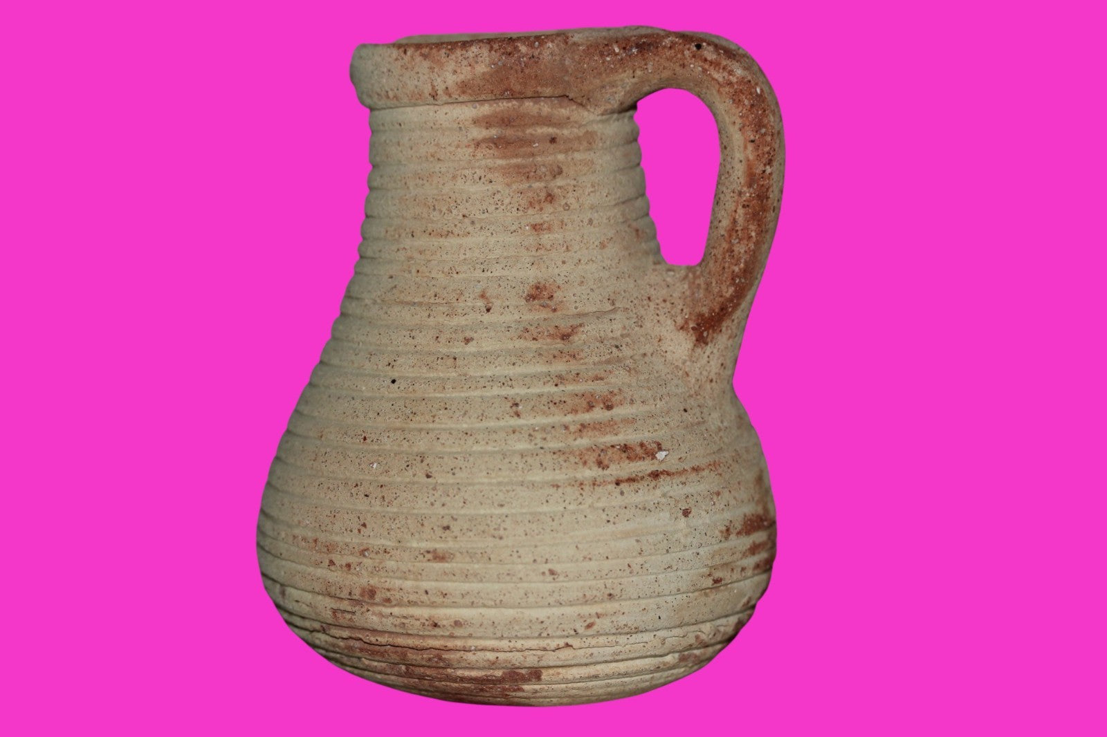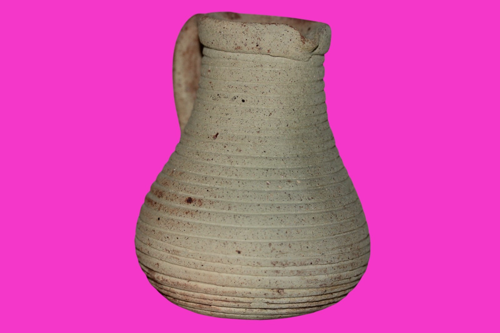 Dimensions: 4 ¼ inches tall, 3 ½ inches wide, weighs 267 grams Provenance: Ex. Private Jerusalem collection, Acquired in the aftermath of the 1967 Six Day War. Acquired by John McIntosh, MSE, MBA, Ancient Artifacts & Treasures, Winter Park, Florida in 2022. Acquired by The Artifact City collection in 2025. Description: Museum quality redware ribbed juglet with most of it’s cream paint remaining. Mineral deposits indicative of approximately 2000 years of underground burial. Minimal wear from use. No repairs or restorations found. Overall Outstanding condition. John 3:16 "For God so loved the world, that he gave his only Son, that whoever believes in him should not perish but have eternal life".