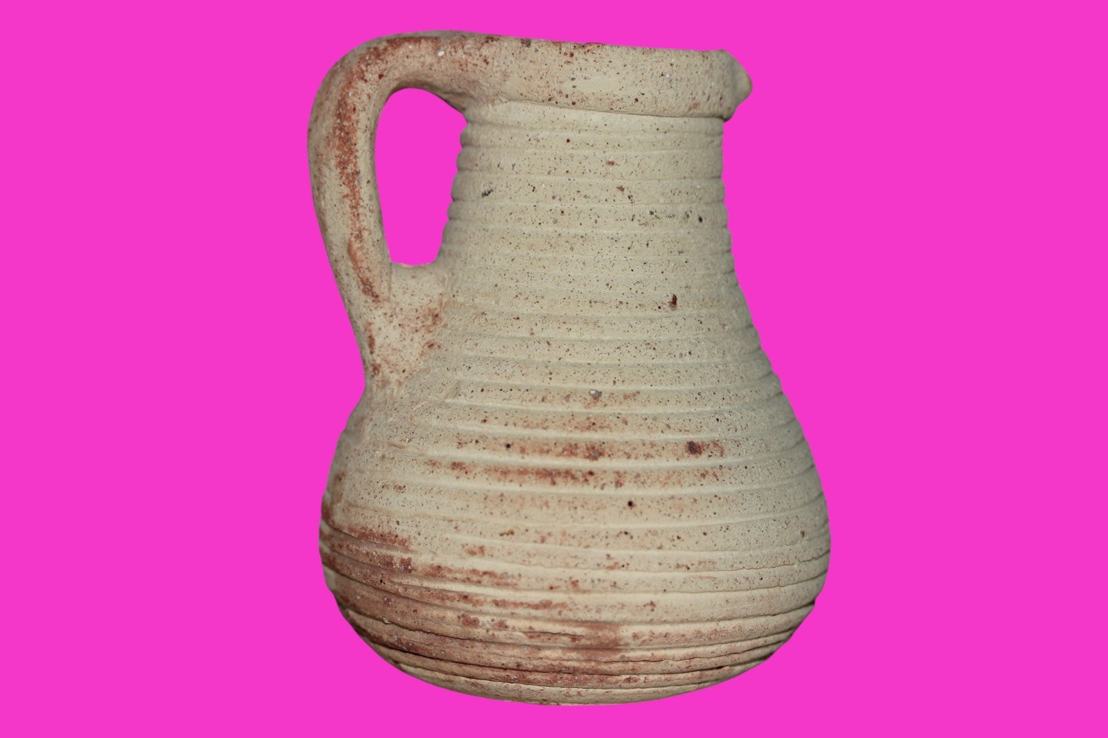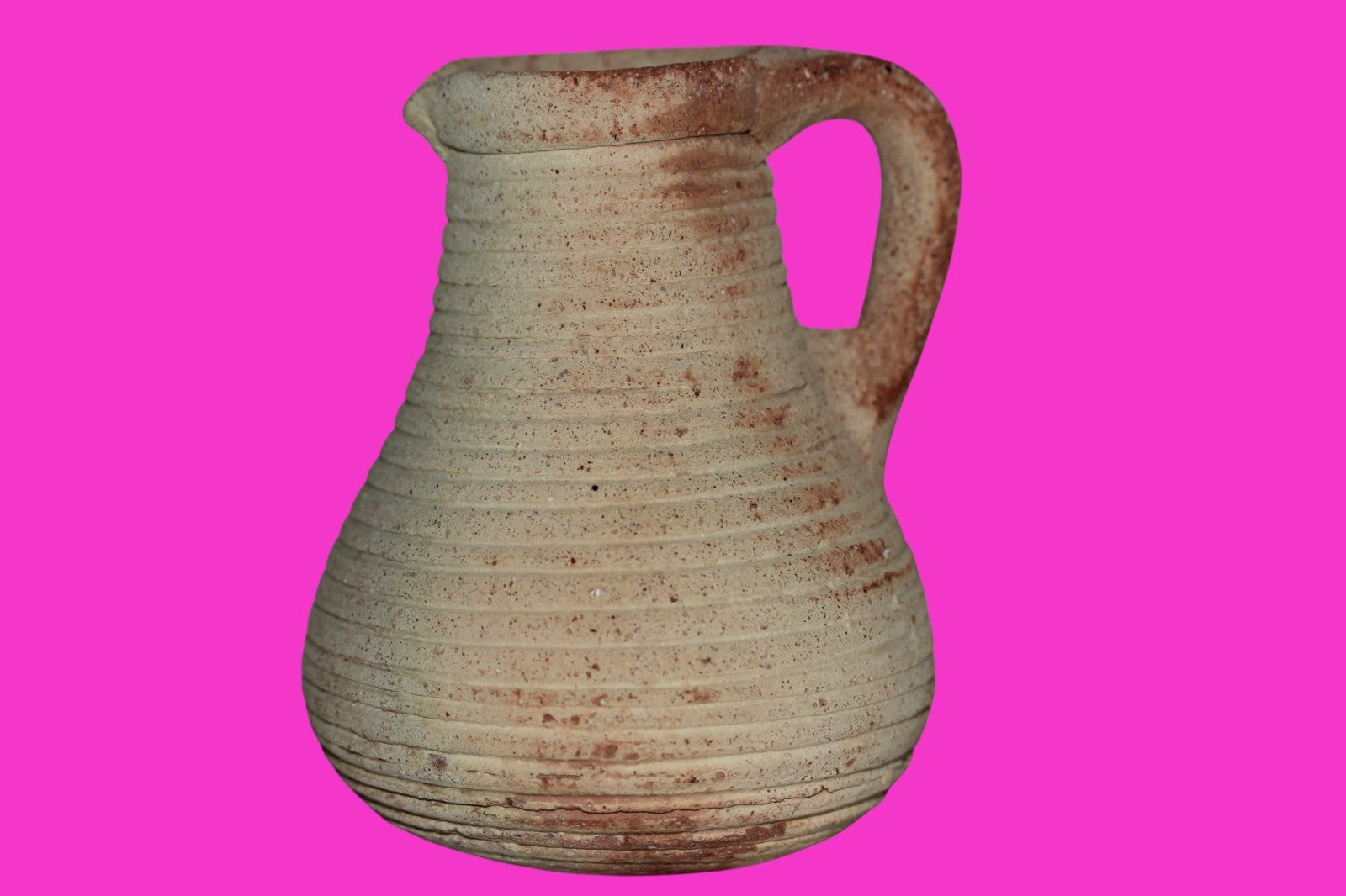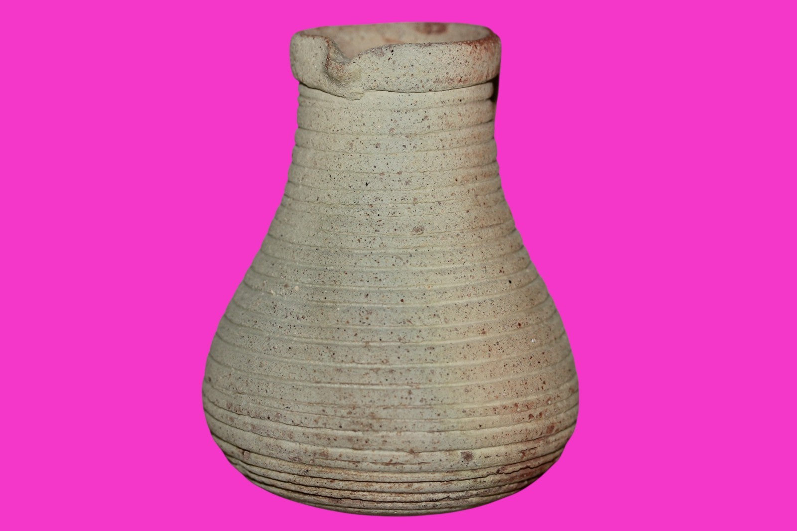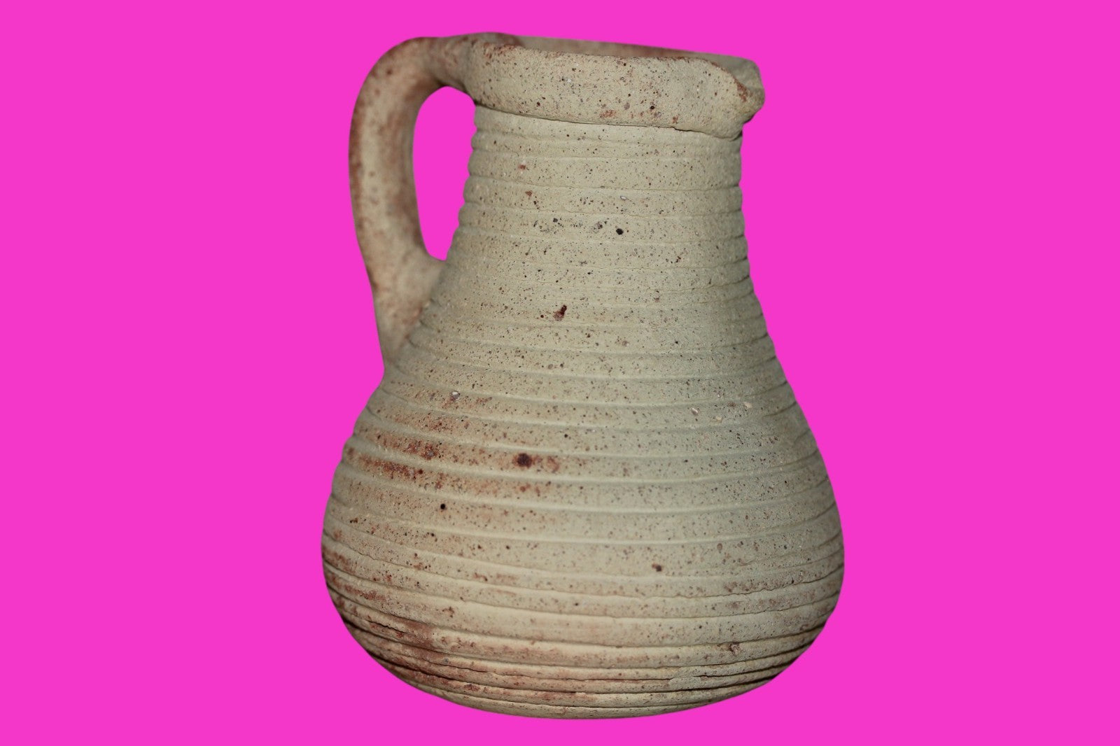 Dimensions: 4 ¼ inches tall, 3 ½ inches wide, weighs 267 grams Provenance: Ex. Private Jerusalem collection, Acquired in the aftermath of the 1967 Six Day War. Acquired by John McIntosh, MSE, MBA, Ancient Artifacts & Treasures, Winter Park, Florida in 2022. Acquired by The Artifact City collection in 2025. Description: Museum quality redware ribbed juglet with most of it’s cream paint remaining. Mineral deposits indicative of approximately 2000 years of underground burial. Minimal wear from use. No repairs or restorations found. Overall Outstanding condition. John 3:16 "For God so loved the world, that he gave his only Son, that whoever believes in him should not perish but have eternal life".