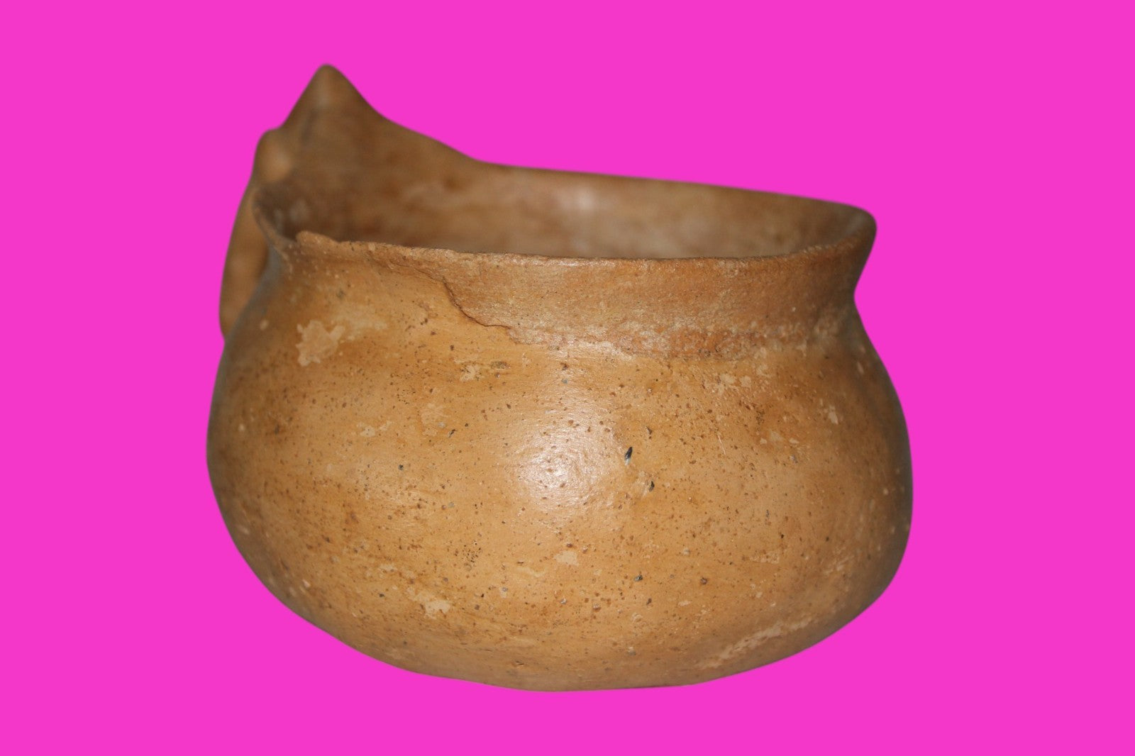 Dimensions: 3 inches tall, 4 ¾ inches wide, weighs 177 grams. Provenance: Ex. Private Jerusalem collection, Acquired in the aftermath of the 1967 Six Day War. Acquired by John McIntosh, MSE, MBA, Ancient Artifacts & Treasures, Winter Park, Florida in 2022. Acquired by The Artifact City collection in 2025. Description: Redware horned handle cup. Mineral deposits indicative of approximately 4000 years of underground burial. Small rim chips, stable age cracks, surface loss. No repairs or restorations found. Outstanding condition. Genesis 17:7-8 “I will always keep the promise I have made to you and your descendants, because I am your God and their God. I will give you and them the land in which you are now a foreigner. I will give the whole land of Canaan to your family forever, and I will be their God. “