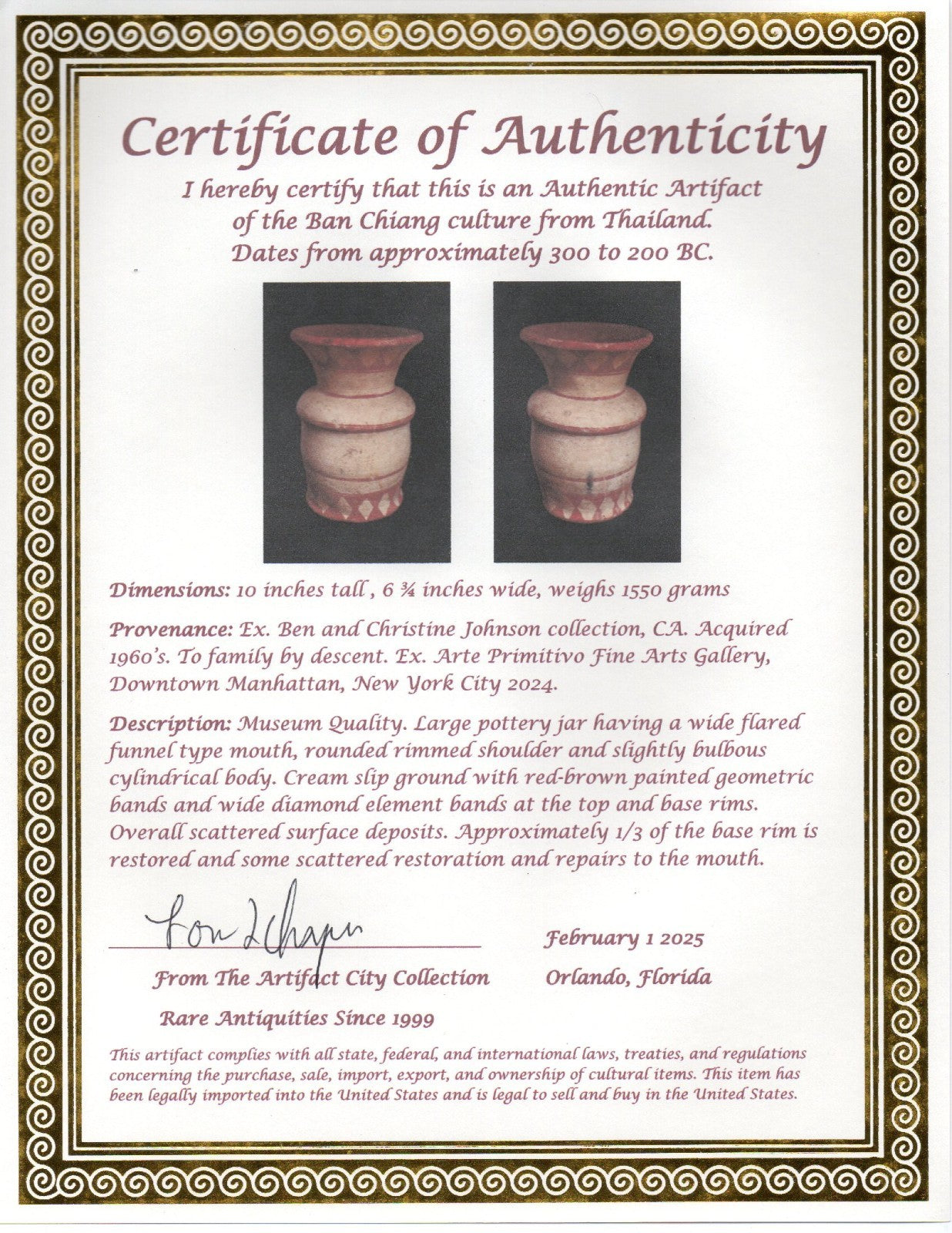 Large Ban Chiang Thailand Artifact Very Rare Pottery Jar 300-200 BC COA T122