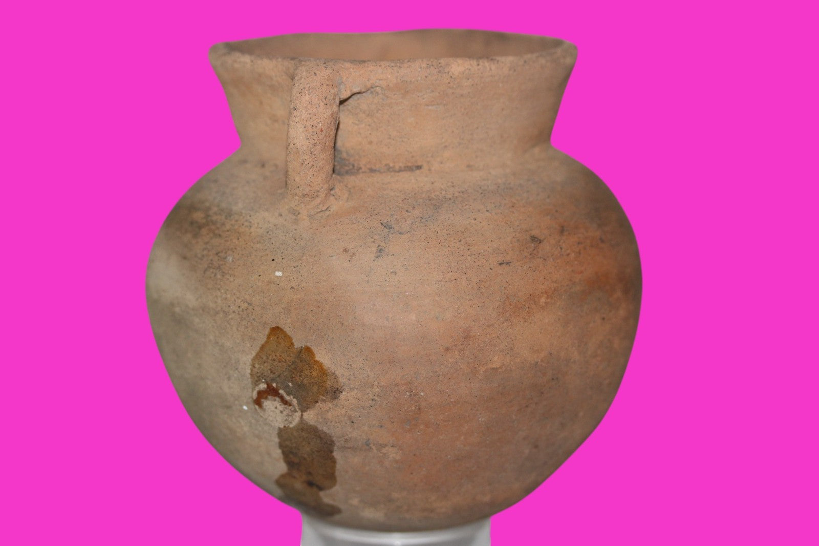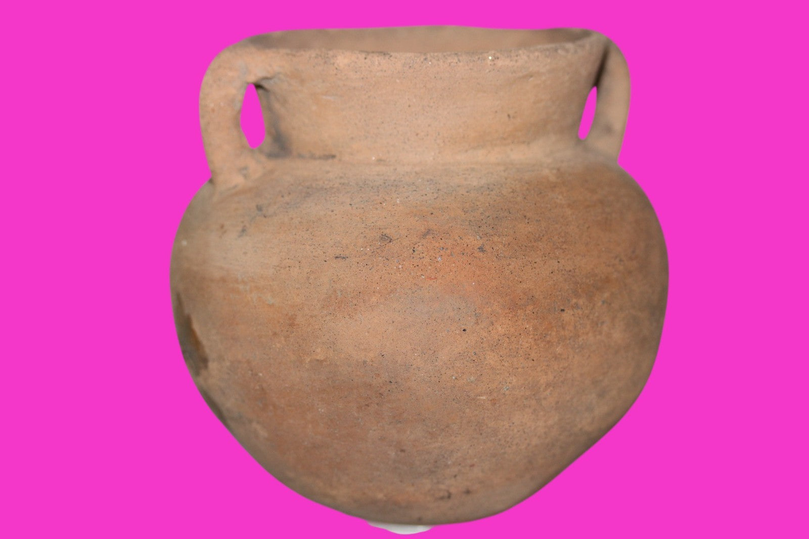 Dimensions: 4 ½ inches tall, 5 inches wide, weighs 279 grams. Description: Redware bowl with two handles. Filled in 1/2 inch surface erosion and what appears to be either leftover glue or resin from the repair. Otherwise intact. Abrasions & wear consistent with age. Overall good condition. Provenance: Ex. Pilar Muniz de Camahort, collected in Costa Rica in the 1950’s. Acquired by John McIntosh, MSE, MBA of Ancient Artifacts & Treasures, Winter Park, Florida in 2010. Consigned to The Artifact City Collection in 2025.