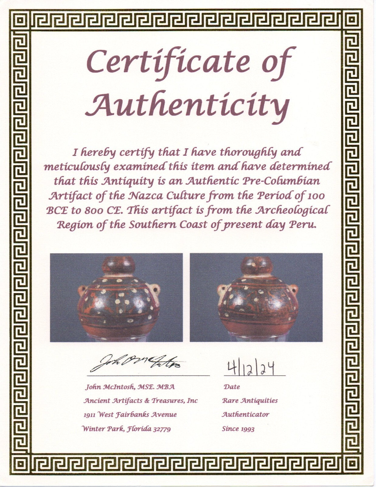 Pre Columbian Artifact Ica Chincha 500-1000AD Guaranteed Authentic with COA J18