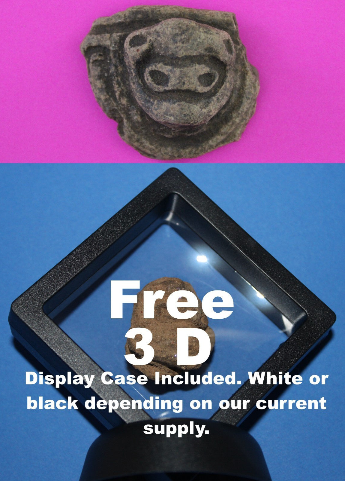 This pottery face is an authentic artifact of the Taino Culture from modern day Puerto Rico and dates from 1000 to 1400 AD. Pre-Columbian Taino’s flourished in Puerto Rico and Hispaniola. Their advanced pottery reflected the respect they had for the many indigenous animals in their surroundings. Taino’s were a very proud and spiritual people. Their legacy lives on in the DNA of their Puerto Rican ancestors.