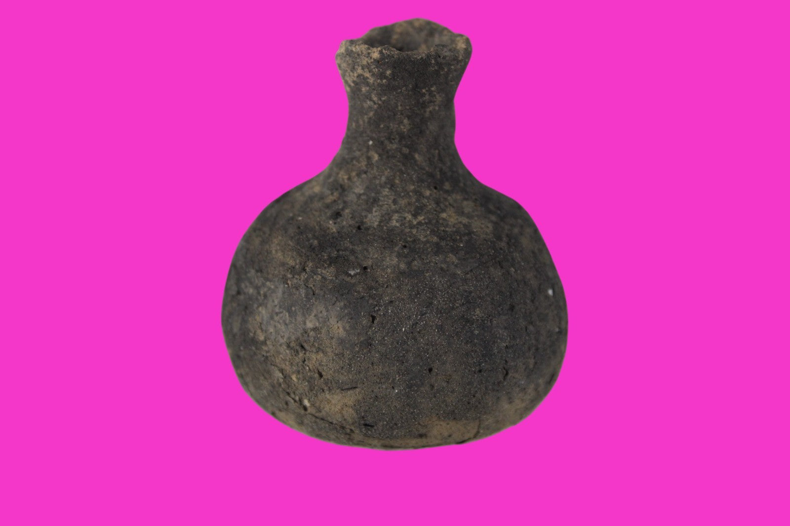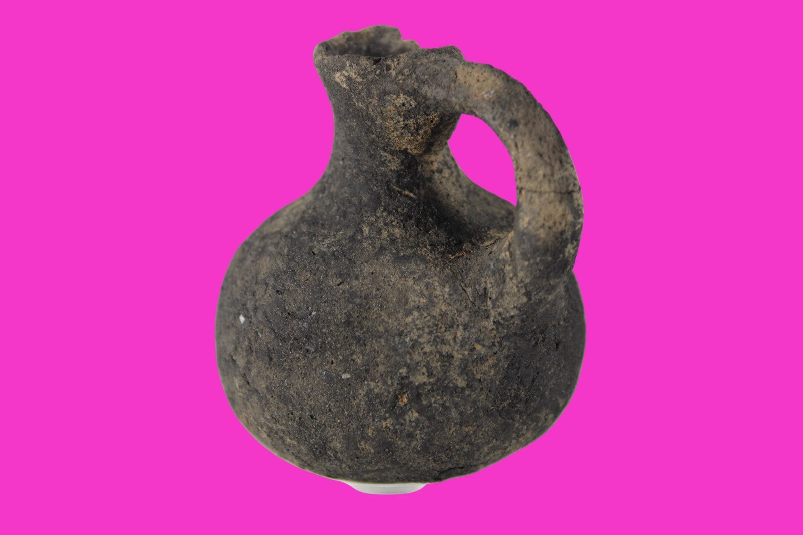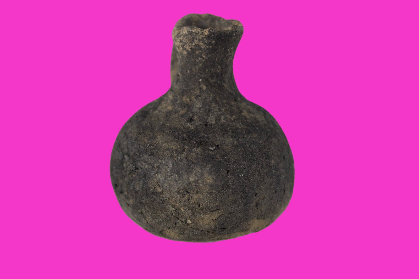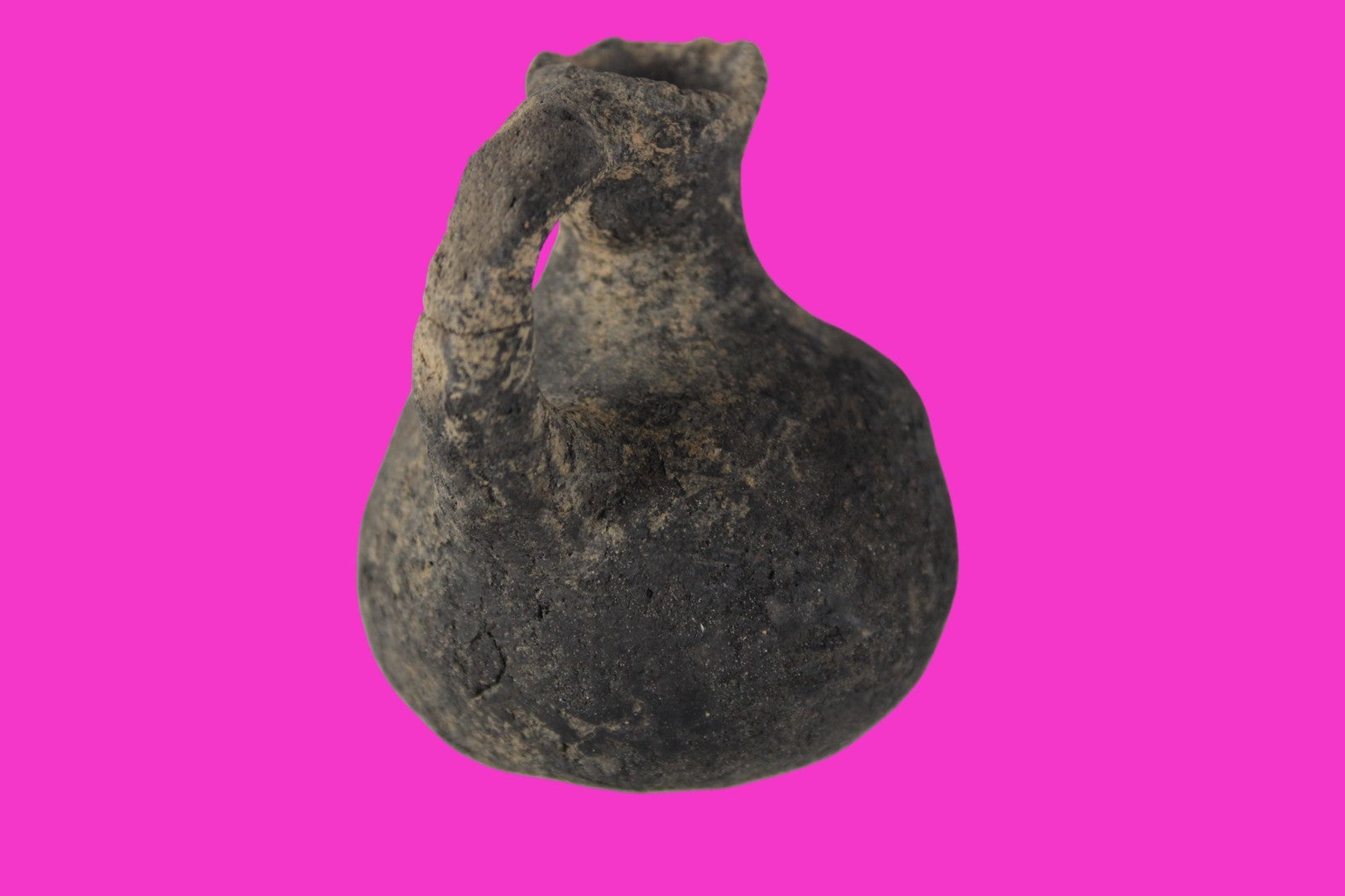 Dimensions: 2 ½ inches tall, 2 inches wide, weighs 43 grams Provenance: Ex private Nevada collection, discovered in the aftermath of the 1967 6 day war. Acquired by The Artifact City Collection in 2025. Description: Blackware terra cotta jug. Mineral deposits indicative of approximately 3000 years of underground burial. Small rim chips and surface loss. No repairs or restorations found. Overall Outstanding condition. King David is often looked upon as the most successful military conqueror in the history of the Israelite nation. By the end of his reign in 971 BC, the boundaries of Israel and the neighboring vassal kingdoms who paid tribute to David stretched across the Fertile Crescent from the Wadi of Egypt to the River Euphrates.