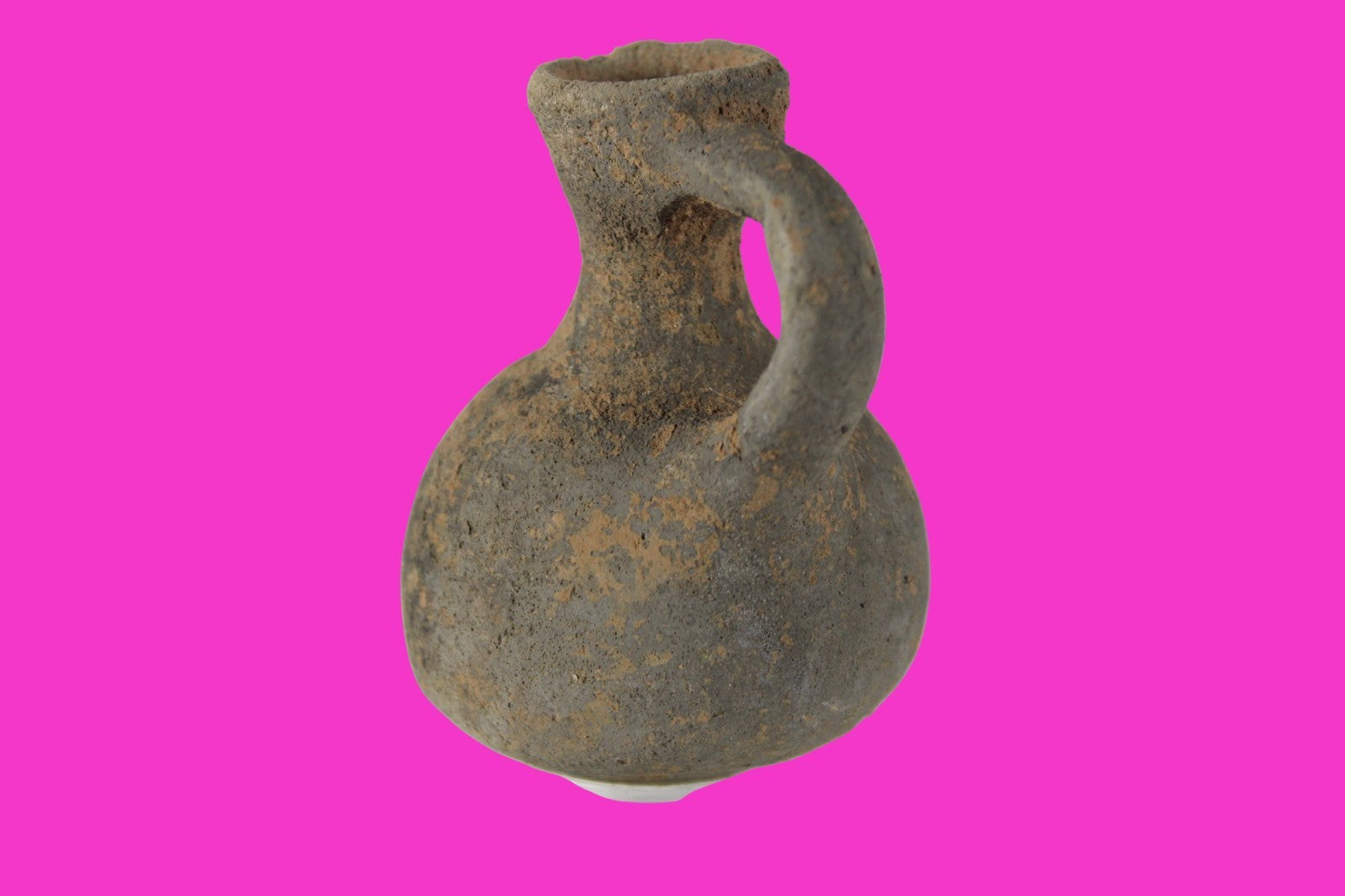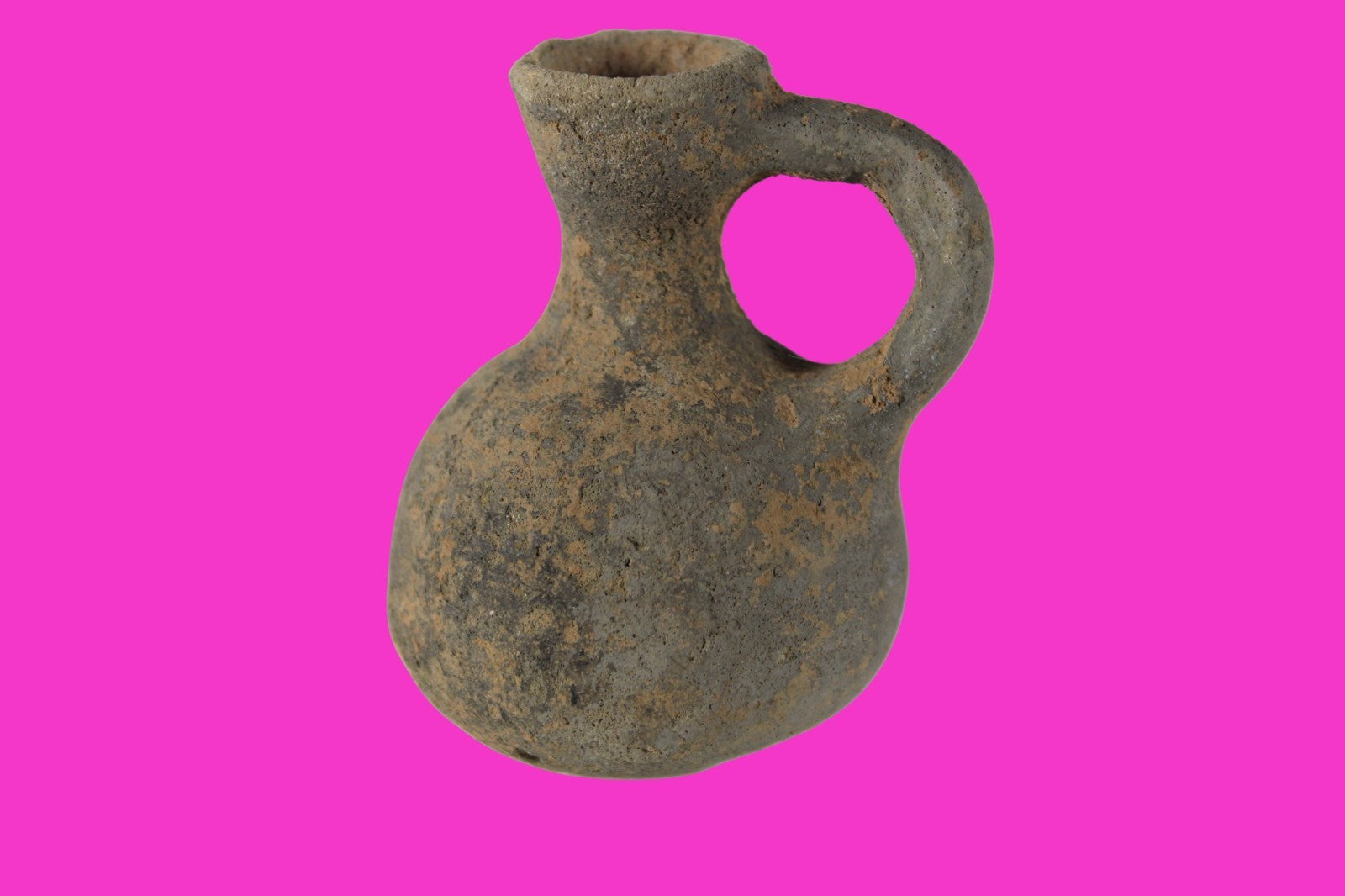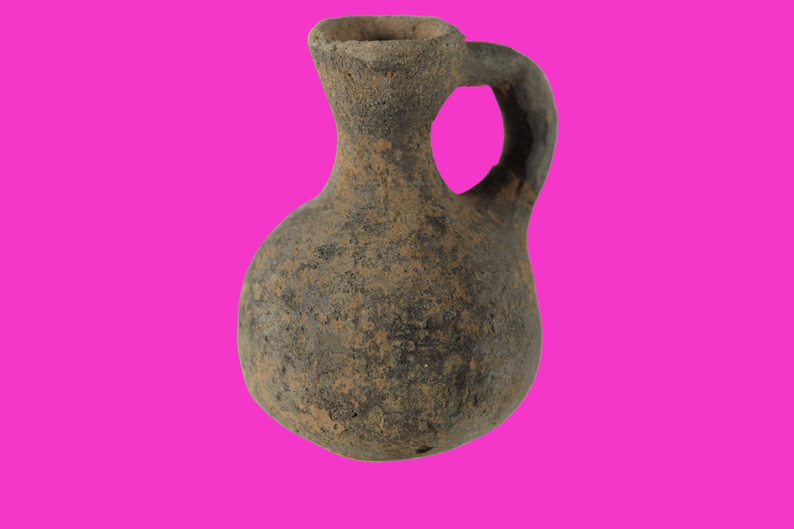 Dimensions: 2 ¾ inches tall, 2 ¼ inches wide, weighs 50 grams Provenance: Ex private Nevada collection, discovered in the aftermath of the 1967 6 day war. Acquired by The Artifact City Collection in 2025. Description: Blackware terra cotta jug. Mineral deposits indicative of approximately 3000 years of underground burial. Small rim chips and surface loss. No repairs or restorations found. Overall Outstanding condition. King David is often looked upon as the most successful military conqueror in the history of the Israelite nation. By the end of his reign in 971 BC, the boundaries of Israel and the neighboring vassal kingdoms who paid tribute to David stretched across the Fertile Crescent from the Wadi of Egypt to the River Euphrates.