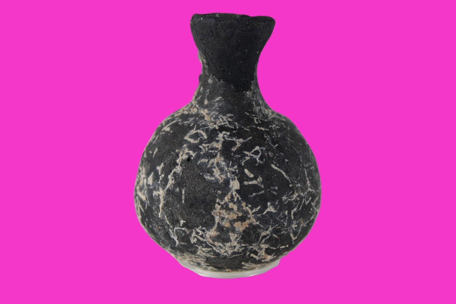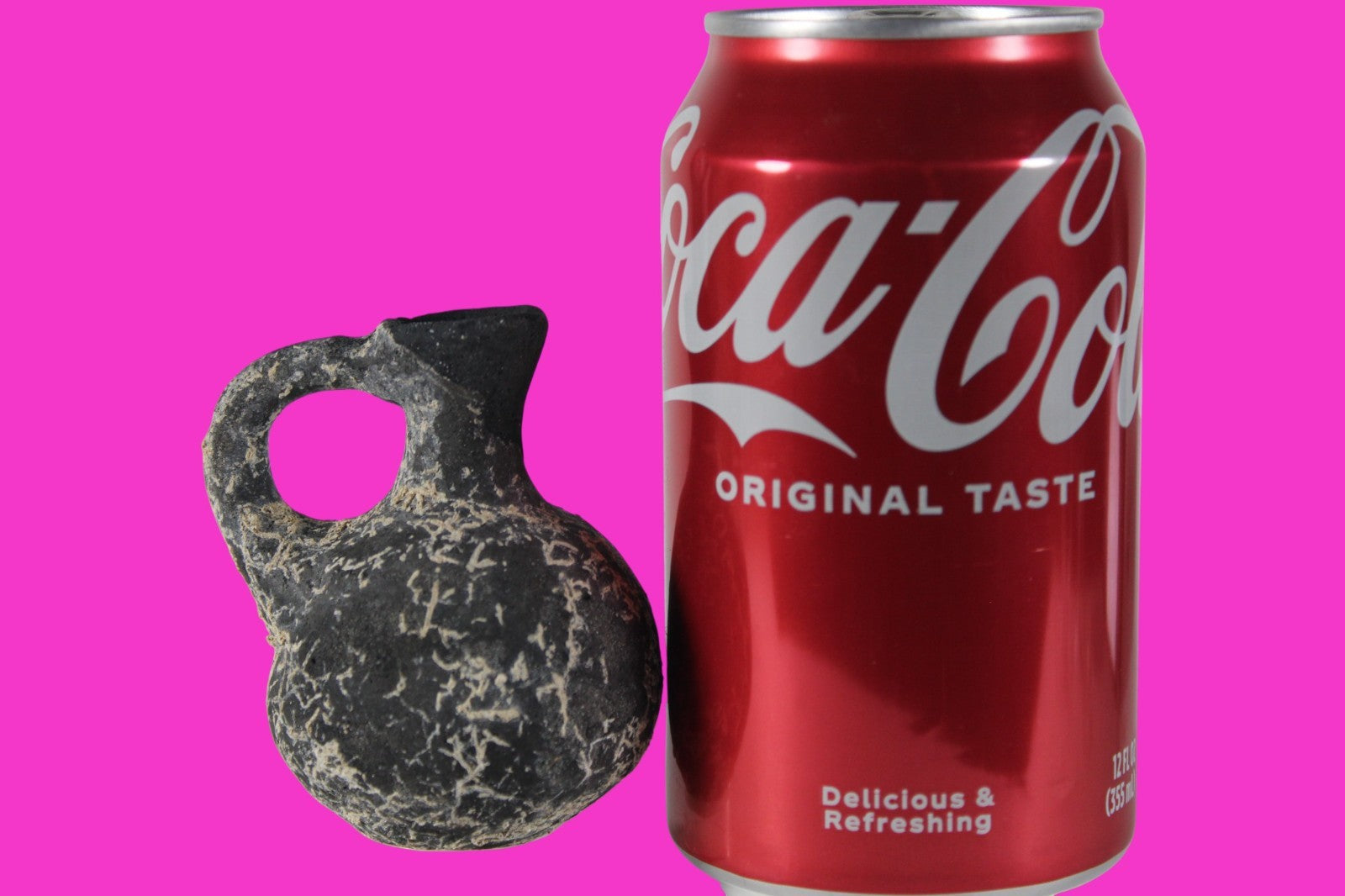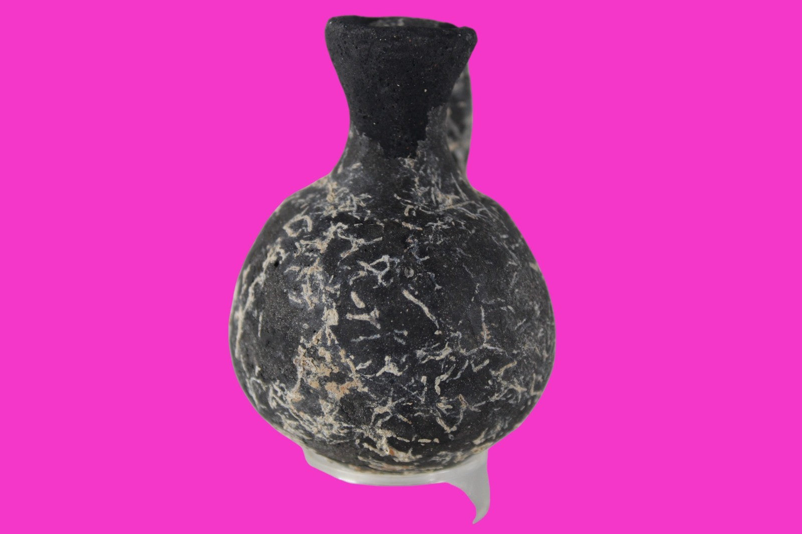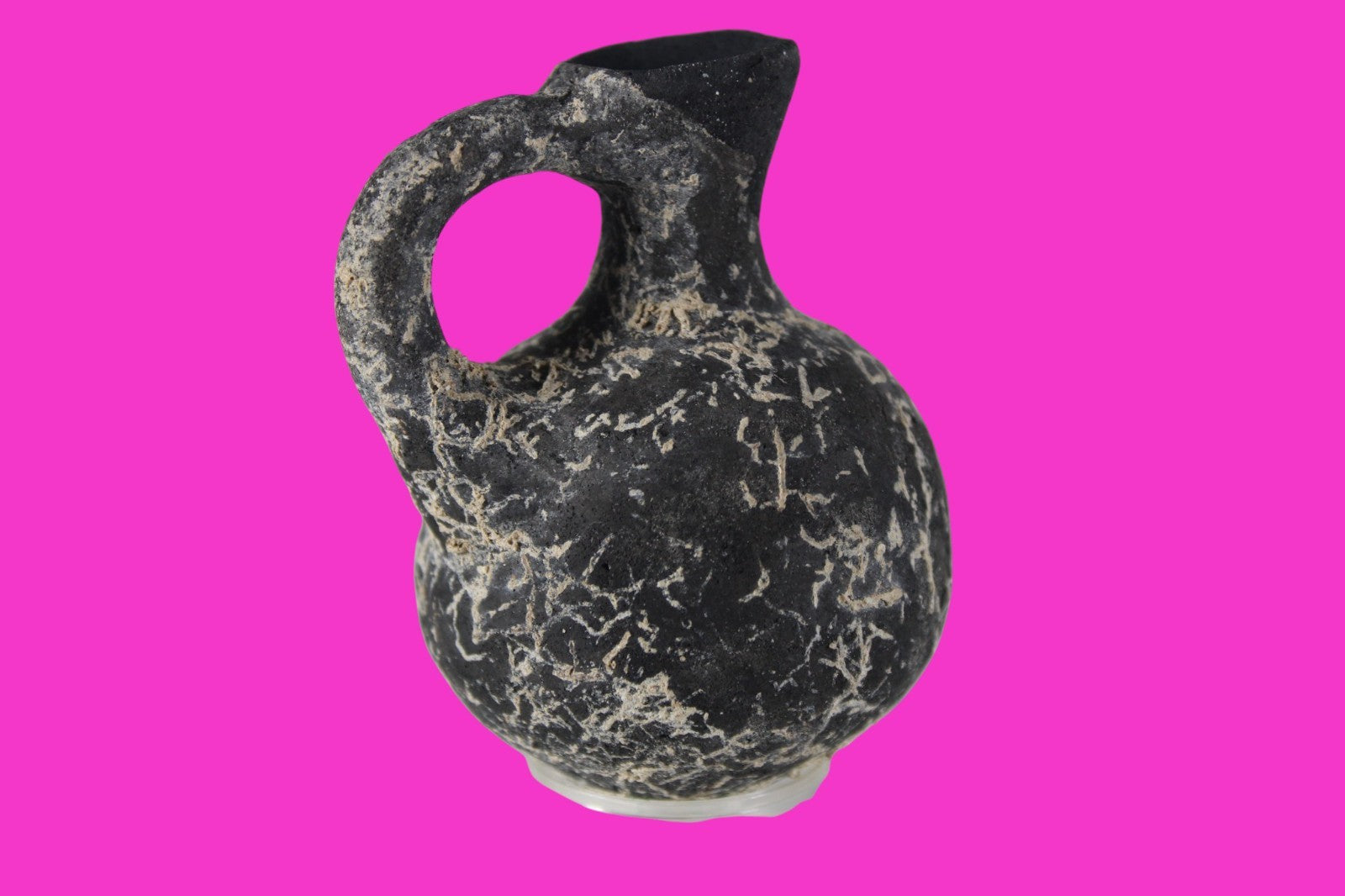 Dimensions: 3 inches tall, 2 ¼ inches wide, weighs 73 grams Provenance: Ex private Nevada collection, discovered in the aftermath of the 1967 6 day war. Acquired by The Artifact City Collection in 2025. Description: Blackware terra cotta jug. Mineral deposits indicative of approximately 3000 years of underground burial. Small rim chips and surface loss. Top of spout repaired, possibly an ancient repair. Outstanding condition. King David is often looked upon as the most successful military conqueror in the history of the Israelite nation. By the end of his reign in 971 BC, the boundaries of Israel and the neighboring vassal kingdoms who paid tribute to David stretched across the Fertile Crescent from the Wadi of Egypt to the River Euphrates.